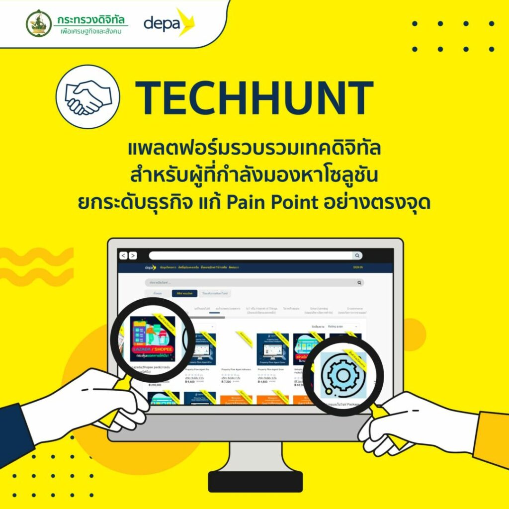 นายณัฐพล นิมมานพัชรินทร์ ผู้อำนวยการใหญ่ สำนักงานส่งเสริมเศรษฐกิจดิจิทัล หรือ ดีป้า เปิดเผยว่า ดีป้ามีนโยบายให้ประชาชนสามารถเข้าถึงบริการดิจิทัลได้ง่ายขึ้น อีกทั้งเป็นการเชื่อมโยงผู้ใช้และผู้ให้บริการดิจิทัล (Digital Provider) เข้าหากัน จึงได้เปิดตัว เทคฮันท์ (TECHHUNT) แพลตฟอร์มรวบรวมเทคโนโลยีดิจิทัลมากกว่า 500 รายการ จากเครือข่ายดิจิทัลสตาร์ทอัพและผู้ให้บริการดิจิทัลสัญชาติไทยที่ขึ้นทะเบียนกับ ดีป้า เพื่อให้บริการ แก่ประชาชน ทุกกลุ่มทั่วประเทศ ไม่ว่าจะเป็น ผู้ประกอบการโรงงานขนาดใหญ่ วิสาหกิจขนาดกลางและขนาดย่อม หรือ เอสเอ็มอี ร้านค้า ชุมชน รวมถึงเกษตรกร