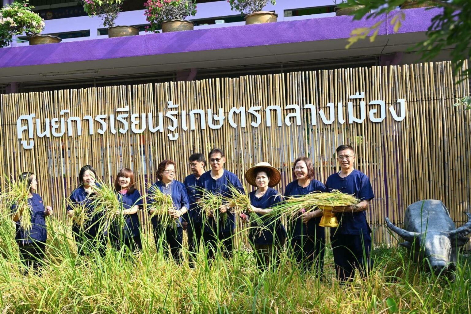 เมื่อวันที่ 14 ก.พ. นายศุภกฤต บุญขันธ์ รองปลัดกทม. เป็นประธานกิจกรรมการเกี่ยวข้าวแบบโบราณ บริเวณแปลงนาสาธิต ศูนย์การเรียนรู้วิถีเกษตรกลางเมือง โรงเรียนวิชูทิศ เขตดินแดง โดยเขตฯ ได้หว่านพันธุ์ข้าวหอมปทุม หรือปทุมธานี 1 เมื่อวันที่ 6 พ.ย.67 ซึ่งมีลักษณะเด่น คือผลผลิตสูง คุณภาพเมล็ดคล้ายพันธุ์ข้าวดอกมะลิ 105 ต้านทานเพลี้ยกระโดดสีน้ำตาล และเพลี้ยกระโดดหลังขาว ต้านทานโรคไหม้ และโรคขอบใบแห้ง ปัจจุบันข้าวหอมปทุมได้ออกรวงเหลืองอร่าม และถึงระยะเวลาเก็บเกี่ยวผลผลิตดังกล่าวแล้ว