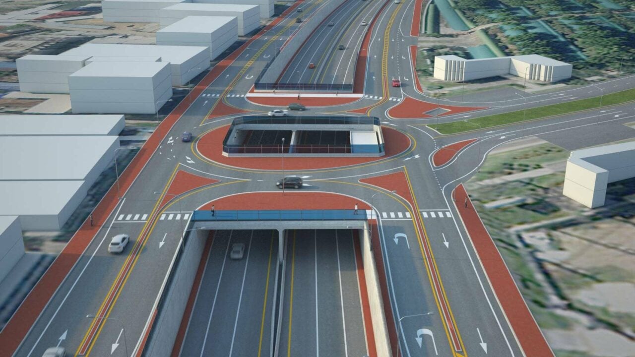 แบ่งทิศทางจราจรด้วยแบริเออร์คอนกรีต ด้านบนทางลอดเป็นระบบวงเวียนขนาด 1 ช่องจราจร กว้าง 4 เมตร ไหล่ทางด้านในกว้าง 1 เมตร ไหล่ทางด้านนอกกว้าง 2 เมตร รวมความกว้าง 7 เมตร พร้อมปรับปรุงทางคู่ขนานทั้ง 2 ฝั่งตลอดแนวทางลอดให้รถวิ่งสวนทางกันได้ เพื่อเชื่อมต่อระหว่างทางเข้าหน้ามหาวิทยาลัยและชุมชนฝั่งตรงข้ามให้ระบบวงเวียนเปลี่ยนทิศทางการจราจรและระบายรถเข้าสู่ถนนคู่ขนานทำให้การจราจรทั้งสองฝั่งเดินทางถึงกันได้อย่างปลอดภัย
