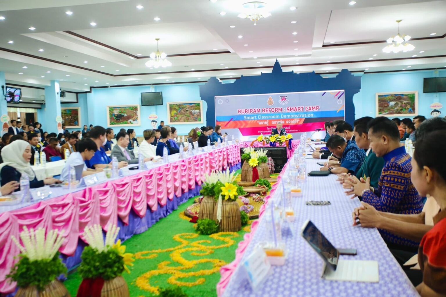 สำหรับโครงการ Buriram Reform : Smart Camp “ฉลาดรู้ ฉลาดคิด ฉลาดทำ” จัดโดยศูนย์บริหารงานการพัฒนาศักยภาพบุคคลเพื่อความเป็นเลิศ สพฐ. ร่วมกับหน่วยงานพันธมิตรและเครือข่ายในพื้นที่ เพื่อส่งเสริมการจัดการเรียนรู้ตามนโยบาย “เรียนดี มีความสุข” ของกระทรวงศึกษาธิการ นำโดย พลตำรวจเอก เพิ่มพูน ชิดชอบ รมว.ศธ. นายสุรศักดิ์ พันธ์เจริญวรกุล รมช.ศธ. นายสิริพงศ์ อังคสกุลเกียรติ ผู้ช่วยรัฐมนตรีประจำ ศธ. และว่าที่ร้อยตรี ธนุ วงษ์จินดา เลขาธิการ กพฐ. โดยมีวัตถุประสงค์เพื่อสาธิตการจัดกิจกรรมค่ายพัฒนาทักษะด้านสะเต็มศึกษา ทักษะการสื่อสารภาษาอังกฤษและภาษาจีน ความรู้ทางการเงินและความรู้ด้านสุขภาพสำหรับนักเรียน ระดับประถมศึกษา เน้นกระบวนการเรียนรู้เพื่อให้เกิดความฉลาดรู้ คือ รู้ในสิ่งที่ควรรู้ รู้ในสิ่งที่ยังไม่รู้ ฉลาดคิด คือ คิดอย่างมีเหตุผล ฉลาดทำ คือ ทำในสิ่งที่เป็นประโยชน์ ผ่านการลงมือปฏิบัติที่กระตุ้นให้กล้าคิด กล้าทำ จุดประกายความฝัน สร้างแรงบันดาลใจ ในการเรียน และสร้างโอกาสในชีวิตให้นักเรียนนำไปใช้ในชีวิตจริง โดยมีกิจกรรมที่น่าสนใจ ประกอบด้วย 7 ฐานการเรียนรู้ ดังนี้