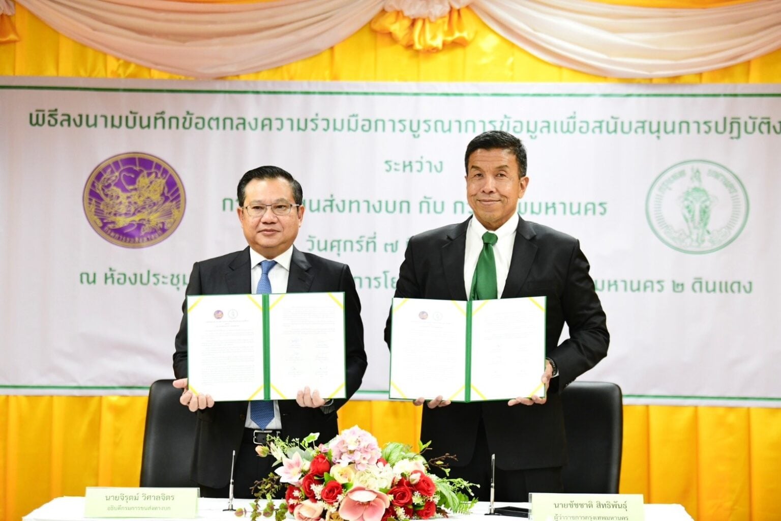 เมื่อเวลา 10.00 น. วันที่ 7 มี.ค. ที่สำนักการโยธา ศาลาว่าการกทม. ดินแดง เขตดินแดง นายชัชชาติ สิทธิพันธุ์ ผู้ว่าฯ กทม. พร้อมด้วย นายจิรุตม์ วิศาลจิตร อธิบดีกรมการขนส่งทางบก ลงนามบันทึกข้อตกลงความร่วมมือ (MOA) การบูรณาการข้อมูลเพื่อสนับสนุนการปฏิบัติงานระหว่าง กรมการขนส่งทางบก กับ กรุงเทพมหานคร โดยมี นายวิศณุ ทรัพย์สมพล รองผู้ว่าฯ กทม. ผู้บริหารกทม. ผู้บริหารสำนักการโยธา ผู้บริหารสำนักการจราจรและขนส่ง ผู้บริหารกรมการขนส่งทางบก และผู้ที่เกี่ยวข้อง ร่วมพิธี