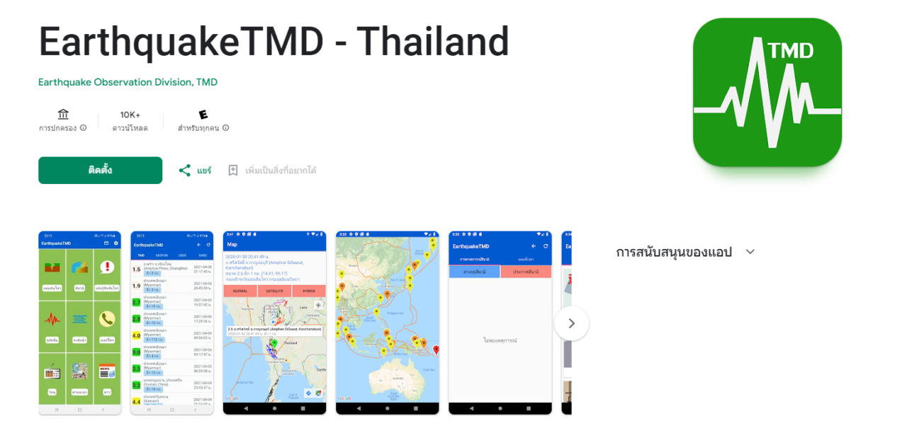 สำหรับ แอปพลิเคชัน “EarthquakeTMD” จะมีฟีเจอร์สุดพิเศษในรายงานแผ่นดินไหวทั่วโลกจากหน่วยงาน GEOFON, USGS และ EMSC อีกทั้งยังมีการคาดการณ์สึนามิจากความลึก และขนาดของแผ่นดินไหวในทะเล โดยสามารถฟังวิทยุจากสถานีวิทยุกรมอุตุนิยมวิทยา พร้อมทั้งกราฟแสดงรูปคลื่นแผ่นดินไหว ระดับน้ำทะเล และเบอร์โทรฯ ฉุกเฉิน รวมถึงการปฏิบัติตัวเมื่อเกิดแผ่นดินไหวและสึนามิ ข่าวแผ่นดินไหวและสึนามิ สิ่งที่สำคัญสามารถแจ้งข้อความข่าวด่วนผ่านทาง “Notification”