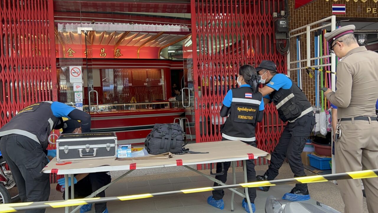 ที่เกิดเหตุเป็นร้านทองริมถนนในชุมชน พบพนักงานร้านยืนรอให้การด้วยอาการตื่นตระหนก บริเวณตู้โชว์ทองรูปพรรณ มีถาดที่ใส่ทองวางกระจัดกระจาย 4 ใบ เบื้องต้นทราบว่า คนร้ายเป็นชาย อายุประมาณ 50-60 ปี ขี่รถ จยย.ฮอนด้า ดรีม สีแดง ติดแผ่นป้ายทะเบียน ยะลา มาคนเดียว ก่อนจอดรถ จยย. ไว้หน้าร้านข้าวขาหมู ก่อนใช้อาวุธปืนบุกเดี่ยวเข้าไปก่อเหตุในร้านทองดังกล่าว ได้ทองรูปพรรณไป 184 บาท จึงบันทึกไว้เป็นหลักฐาน