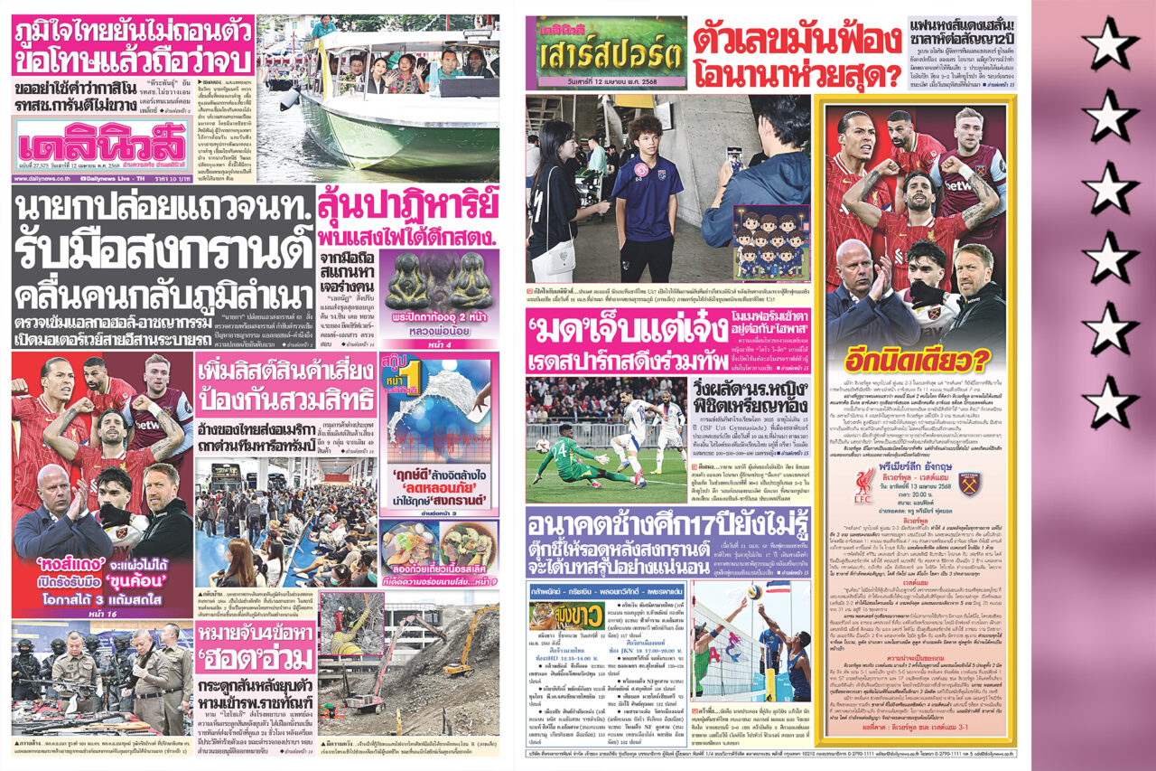 รายละเอียดทั้งหมดสามารถติดตามได้ในหนังสือพิมพ์ “เดลินิวส์” ฉบับวันที่ 12 เม.ย. และฉบับล่วงหน้า วันที่ 13 เม.ย.2568