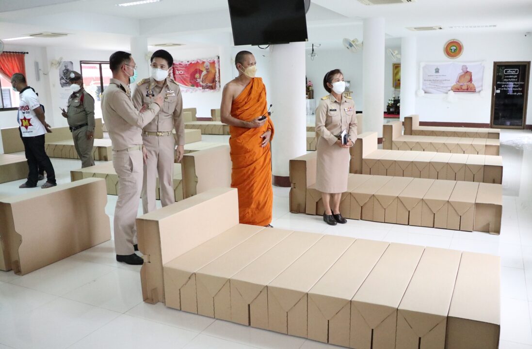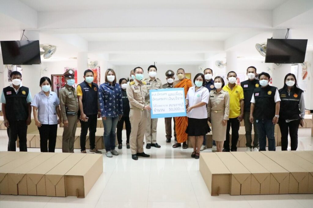 นายอัครเดช วงษ์พิทักษ์โรจน์ ส.ส.ราชบุรี และกลุ่มเพื่อน ได้รวมกันบริจาคเงิน 50,000 บาท สมทบทุนให้รพ.บ้านโป่ง ใช้ในการบริหารจัดการโรงพยาบาลสนาม นอกจากนั้น บริษัทเอสซีจีพี โรงงานบ้านโป่ง ยังได้สนับสนุนเตียงกระดาษ จำนวน 72 เตียง พร้อมมีรถเอกซเรย์เคลื่อนที่โรงพยาบาลบ้านโป่ง มาจอดเพื่อวางระบบ ซึ่งโรงพยาบาลสนามแห่งนี้ถือเป็น “โรงพยาบาลสนามแห่งแรกของประเทศไทย” ที่ทางคณะสงฆ์ได้จัดทำหลักสูตรปฏิบัติธรรม ฝึกสมาธิให้กับผู้ป่วยที่เข้ามากักตัว เพื่อลดความเครียด มีพุทธศาสนา เป็นที่ยึดเหนี่ยวจิตใจ