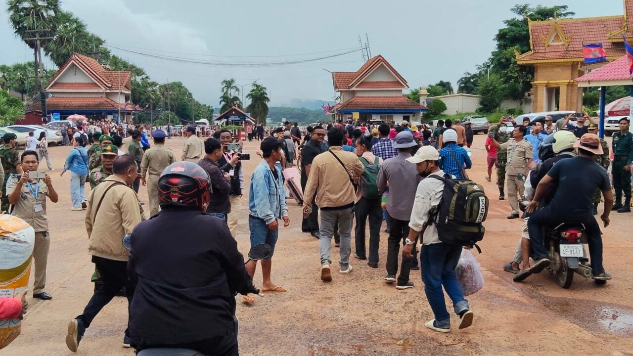 เมื่อเวลา 09.00 น. วันที่ 13 มิ.ย. 68 ที่ ประตูด่าน จุดผ่านแดนถาวรช่องจอม ต.ด่าน อ.กาบเชิง จ.สุรินทร์ ซึ่งมีการเปิดด่านเป็นวันที่ 3 หลังไทยมีมาตรการตอบโต้กัมพูชา โดยจะมีการเปิดด่าน สัปดาห์ละ 3 วัน คือ วันจันทร์-พุธ-ศุกร์ เวลา 8 โมงเช้า ถึงบ่าย 3 โมง ซึ่งหลังจากเจ้าหน้าที่ไทยเปิดประตูด่านเวลา 8 โมงเช้า จากนั้นเวลา 9 โมงเช้า เจ้าหน้าที่ของกัมพูชา ถึงเวลาเปิดล็อกกุญแจแผงเหล็กลวดหนามที่กั้นประตูฝั่งกัมพูชาออก ก่อนที่ชาวกัมพูชา ส่วนใหญ่ที่มาจากต่างพื้นที่และต่างจังหวัด มายื่นเอกสารหนังสือเดินทางต่างๆ กับ ตม.สุรินทร์ ก่อนจะพากันข้ามแดนกลับกัมพูชาอย่างคึกคัก ขณะที่คนไทยที่ข้ามแดนลดน้อยลงมาก