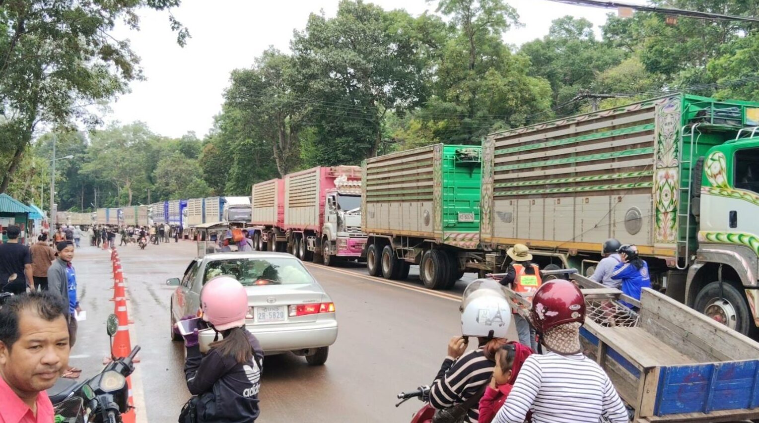 อย่างไรก็ตาม ก็ยังพบว่ามีชาวกัมพูชาในพื้นที่ชายแดน ที่ข้ามแดนมายังฝั่งไทยเพื่อมาซื้อสินค้า แต่มีจำนวนไม่มากเช่นเดิม ส่วนรถบรรทุกขนส่งสินค้าฝั่งไทย จอดรอคิวยาวเหยียดกว่า 1 กิโลเมตร เพื่อรอข้ามไปฝั่งกัมพูชา ทั้งนี้รถบรรทุกสินค้าส่วนใหญ่ จะข้ามแดนไปเพื่อบรรทุกมันสัมปะหลังหัวและมันสัมปะหลังเส้นที่กัมพูชา เพื่อนำเข้าประเทศไทย ขณะที่เจ้าหน้าที่ไทยจากหลายหน่วยงานที่เกี่ยวข้อง ต่างร่วมกันตรวจรถยนต์และผู้ที่เข้า-ออก อย่างเข้มงวด