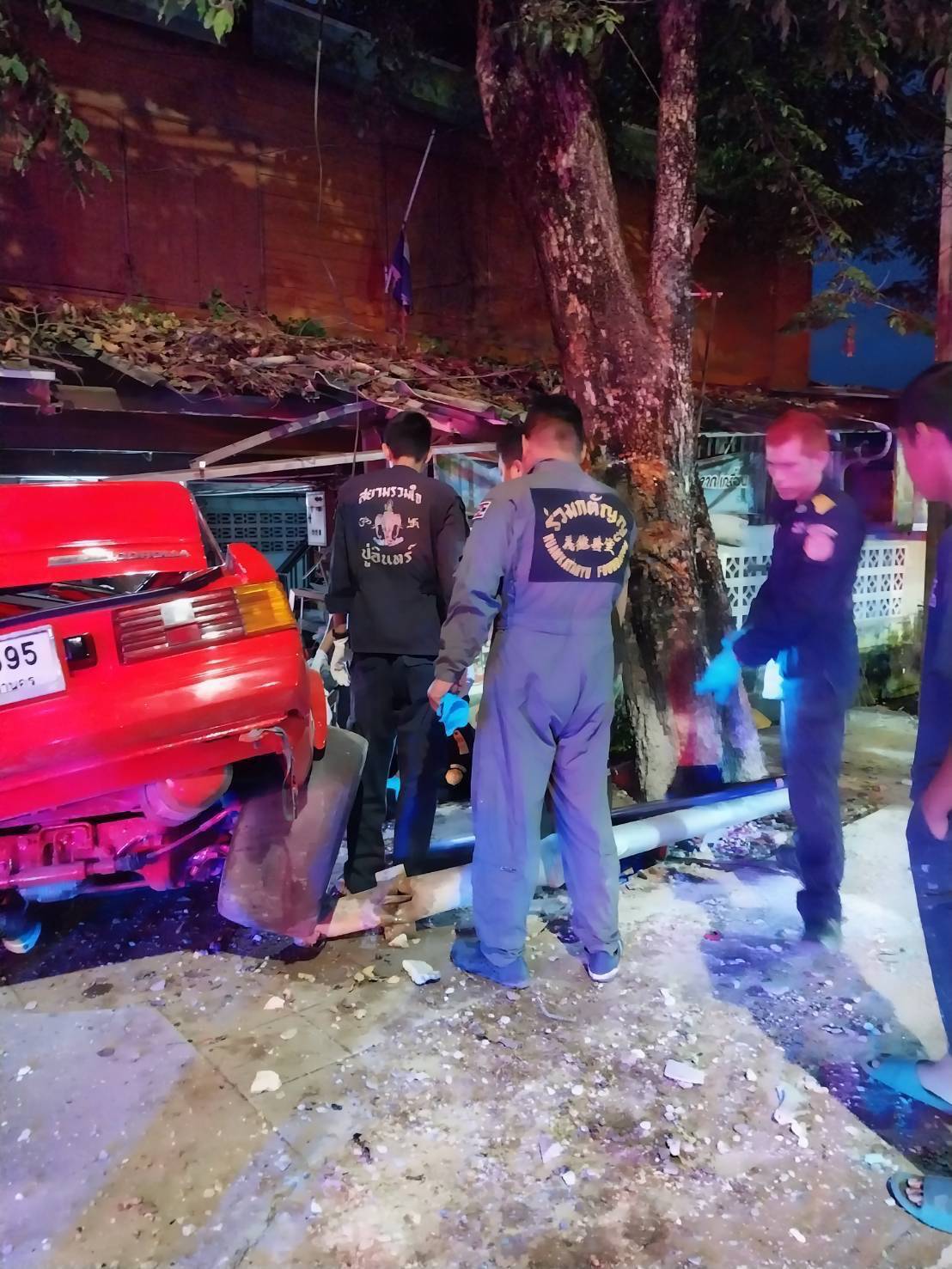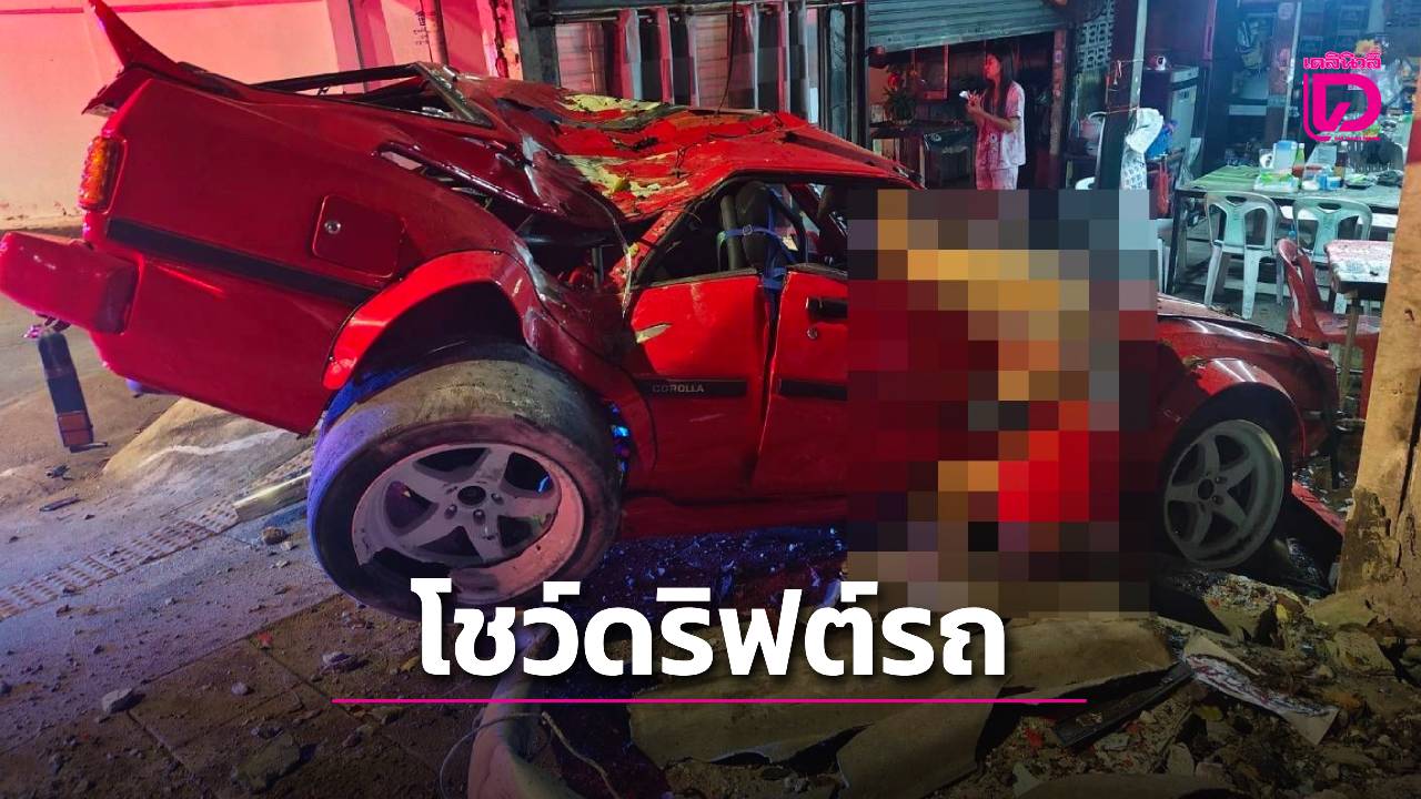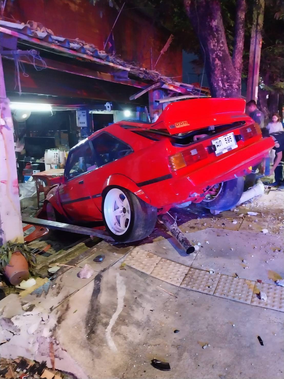 ที่เกิดเหตุพบรถสปอร์ต โตโยต้า ลิฟแบ็ก สีแดง ทะเบียน ฆภ 595 กรุงเทพมหานคร ลักษณะแต่งซิ่ง ใส่ยางสลิก หรือยางรถแข่ง ไม่มีดอกยาง ใช้ในสนามแข่งเท่านั้น สภาพพังยับ กระจกด้านหน้าและกระจกประตูทั้ง 2 ข้างแตก พุ่งชนป้ายซอยและกำแพงปูนของร้านก๋วยเตี๋ยว ส่วนคนขับคือ นายจารุพงศ์ อยู่เย็น อายุ 47 ปี ร่างกระเด็นออกมานอกรถอาการสาหัส เจ้าหน้าที่ทำการปฐมพยาบาลเบื้องต้น ก่อนนำส่งโรงพยาบาลใกล้เคียง ส่วนคนนั่งข้างคือ นายศักดิ์ศรี ชีนิมิตร อายุ 52 ปี เจ้าของรถ กระเด็นออกมานอกรถเสียชีวิต สภาพคอ แขนขาหัก ส่วนคนที่อยู่ในร้านก๋วยเตี๋ยวไม่มีผู้ได้รับบาดเจ็บแต่อย่างใด