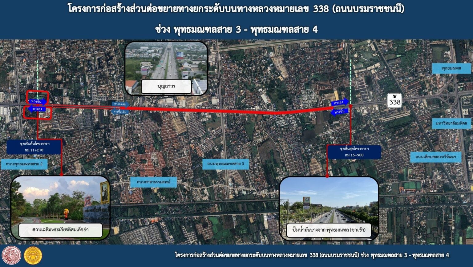 “ทีมข่าวนวัตกรรมขนส่งเดลินิวส์” รายงานว่า สำนักสะพาน กรมทางหลวง (ทล.) เปิดประกวดราคา อิเล็กทรอนิกส์ (e-bidding) งานจ้างเหมาโครงการก่อสร้างส่วนต่อขยายทางยกระดับบนทางหลวงหมายเลข 338 (ถนนบรมราชชนนี) เฟส 1 ช่วงพุทธมณฑลสาย 3-พุทธมณฑลสาย 4 ระยะทางรวม 4.63 กม. วงเงินรวม 4,490 ล้านบาท แล้ว