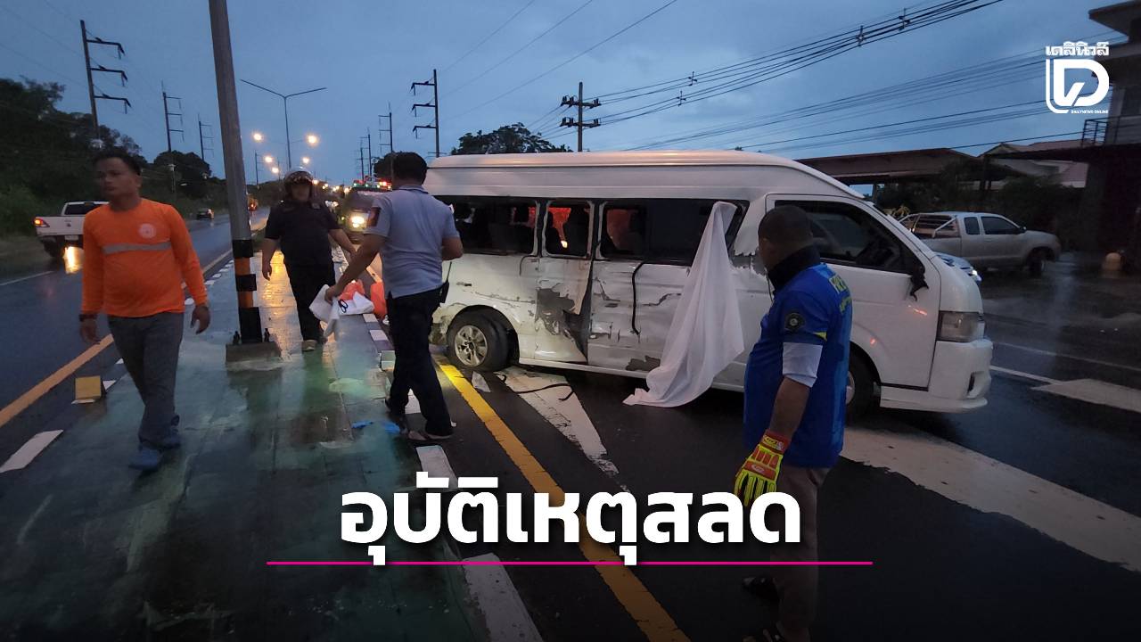ห่างออกไปเล็กน้อย พบรถตู้รับส่งนักเรียน สีขาว ยี่ห้อโตโยต้า หมายเลขทะเบียน นข 5713 ศรีสะเกษ สภาพรถฝั่งขาวพังเสียหาย กระจกแตกเสียหาย มีผู้บาดเจ็บประมาณ 11 ราย เสียชีวิตภายในรถ 2 ราย เป็น ชาย 1 หญิง 1 ทราบชื่อต่อมา คือ ด.ช.กรวิชญ์ บัวนิล อายุ 9 ปี และ ด.ญ.ณัฐลักษณ์ นาห่อม อายุ 13 ปี ซึ่งผู้บาดเจ็บ และผู้เสียชีวิต เจ้าหน้าที่หน่วยกู้ภัยเร่งนำตัว และนำร่าง ส่งโรงพยาบาลอุทุมพรพิสัย อย่างเร่งด่วน