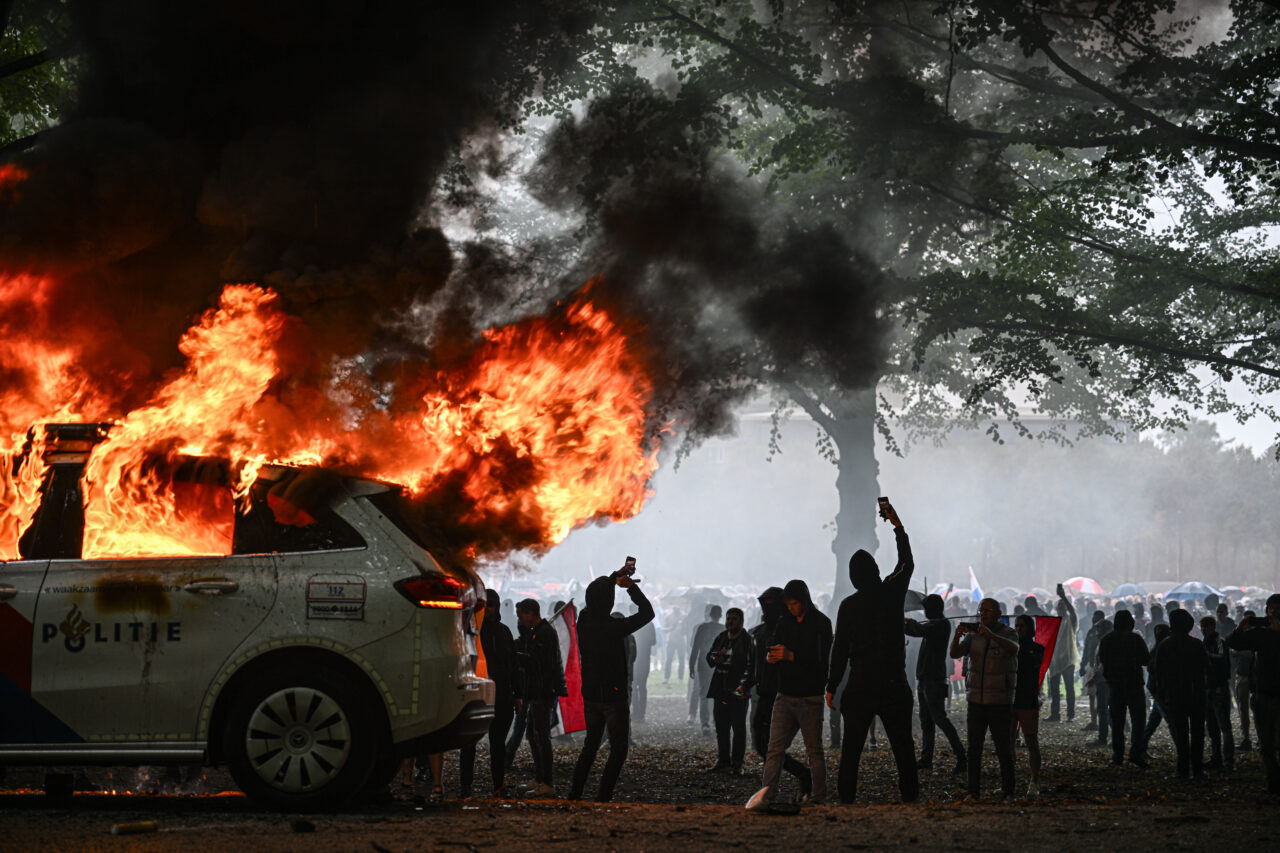 ???????? #Netherlands: The anti-immigration protest in The Hague (dubbed "Elsfest" by organisers) was shut down by city authorities. Police reportedly moved in to clear the Malieveld, using tear gas to disperse the crowd. Footage shows burned police vehicles on the field, while… pic.twitter.com/AZ7sRjxmCz