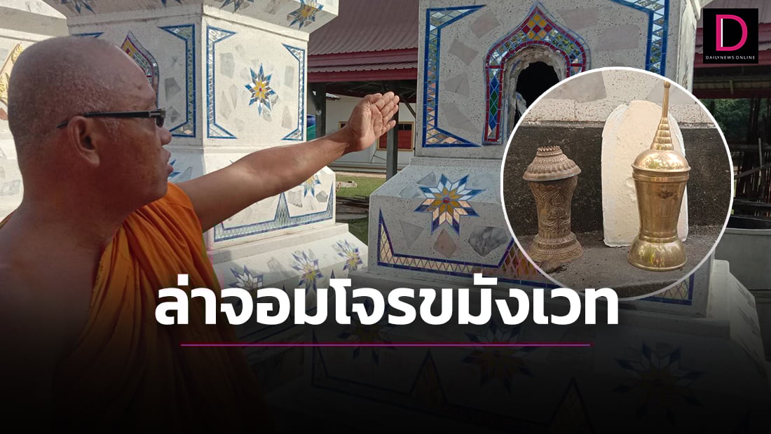 พระเสถียร อายุวัฑฒโก เล่าว่า เมื่อช่วงเช้ามืดวานนี้ (วันที่ 25 พ.ย.) หลังกลับจากบิณฑบาต อาตมาสังเกตเห็นโกศใส่กระดูกสีทองวางเรียงรายอยู่หน้าเจดีย์หลายโกศ จึงนึกสงสัยแล้วเดินเข้าไปดู ปรากฏว่าเจดีย์ ถูกคนร้ายทุบเป็นรูเกือบทั้งหมด แล้วเอาเถ้ากระดูกออกมาเทกองรวมกันจนไม่รู้ว่ากระดูกใครเป็นของใคร โดยมีผ้าขาวห่อกระดูกและเงินเหรียญปากผี ถูกคนร้ายขโมยหายไปทั้งหมด เจดีย์ได้รับความเสียหายจำนวน 24 เจดีย์ จึงได้เรียกให้ผู้ใหญ่บ้านและชาวบ้านออกมาดู ก่อนที่จะได้แจ้งตำรวจ สภ.ขุขันธ์ มาตรวจสอบ