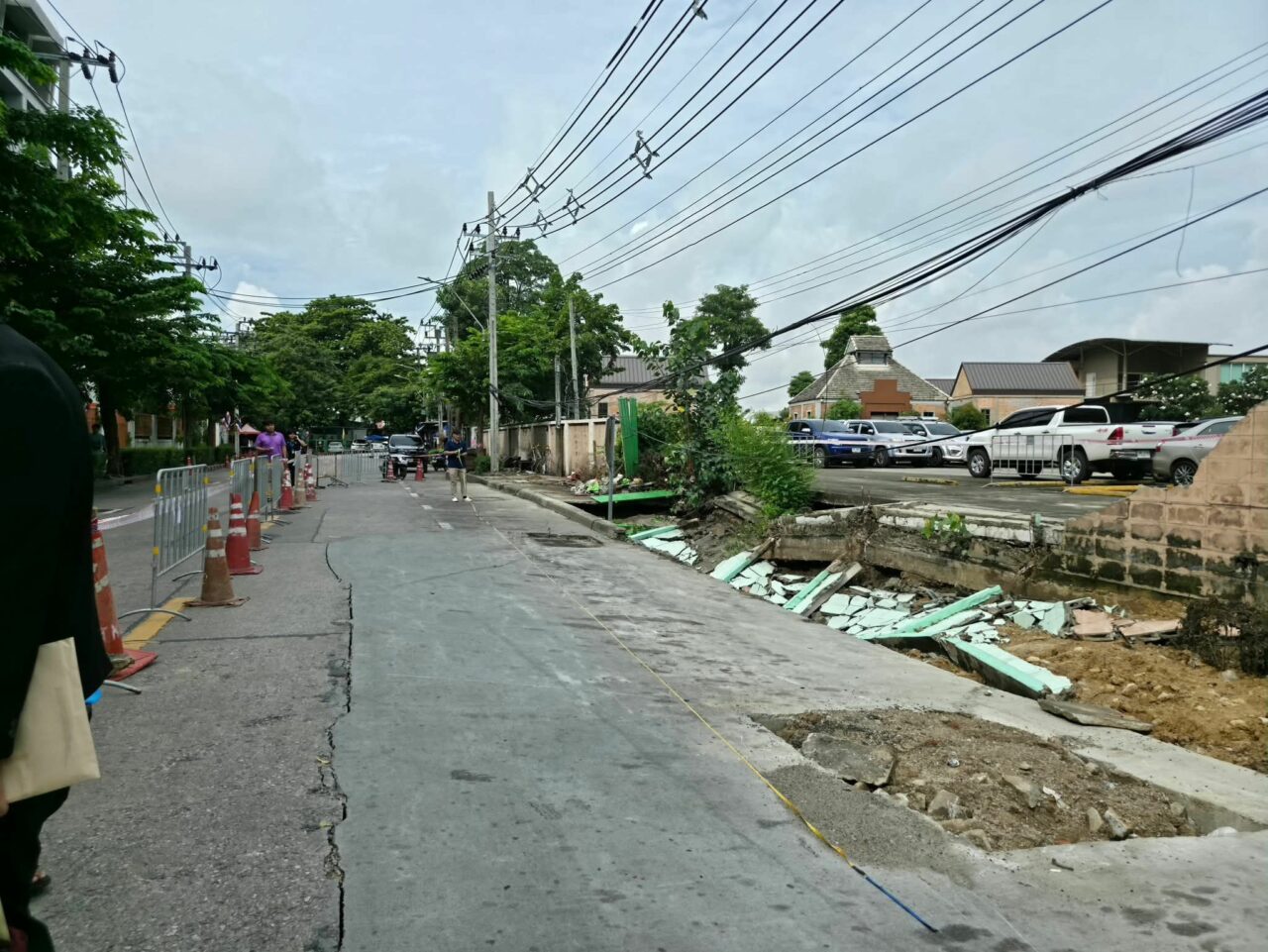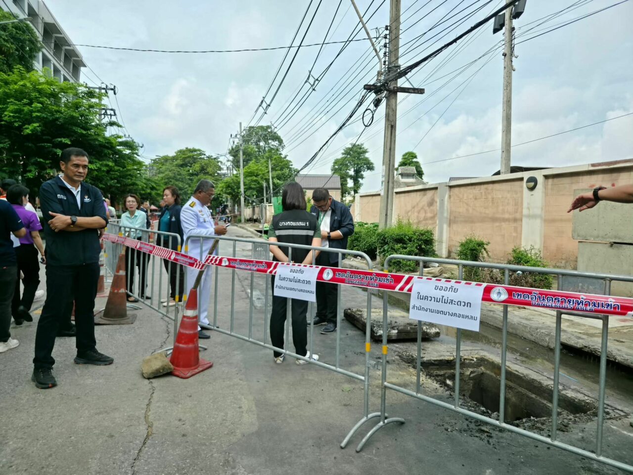 ทั้งนี้ สำนักงานเขตประสานสำนักการระบายน้ำ กรุงเทพมหานคร เพื่อดำเนินการบล็อกกั้นแนวท่อระบายน้ำ และติดตั้งเครื่องสูบน้ำ เพื่อป้องกันน้ำไหลไปยังพื้นที่ทรุดตัวของถนนเพิ่มเติม และอยู่ระหว่างการประสานงานร่วมกัน เพื่อวางแผนและกำหนดแนวทางการดำเนินการแก้ไขต่อไป.