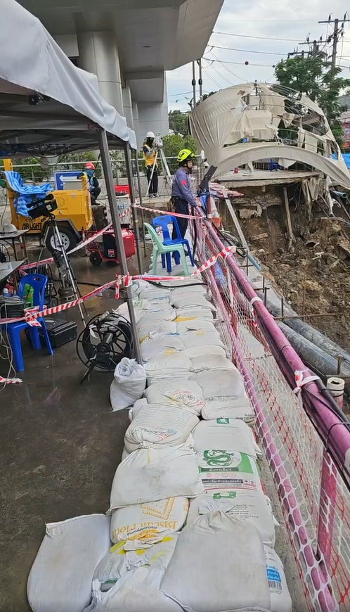ทั้งนี้ สำหรับความคืบหน้า การปฏิบัติงานวานนี้ มีรายงาน ถมทรายเพิ่มอีกประมาณ 1,300 คิว ปริมาณทรายที่ถมไปทั้งหมดราว 3,500 คิว มีการย่อยแผ่นคอนกรีตในบริเวณหลุมแล้ว และทรายส่วนหนึ่งได้ถูกดันเข้าไปด้านใต้ สน.สามเสน รวมถึงเสริมความมั่นคงแข็งแรง โดยทำตัวค้ำยันชั่วคราว (เสาเข็มสั้น) ซึ่งสำนักป้องกันและบรรเทาสาธารณภัย เฝ้าระวังตั้งกล้องตรวจสอบความเคลื่อนไหวของอาคาร ยังไม่พบการเคลื่อนไหวที่รุนแรง ยังคงปกติ โดยการเตรียมเปิดให้บริการถนนสามเสนหน้าโรงพยาบาลวชิรพยาบาล คาดการณ์ว่าการถมทรายจะแล้วเสร็จประมาณวันที่ 4 – 5 ต.ค. 68 จากนั้น จะมีการบดอัดทรายและทำชั้นพื้นถนน โดยเปิดใช้งานจริง ในวันที่ 9 ต.ค. 68