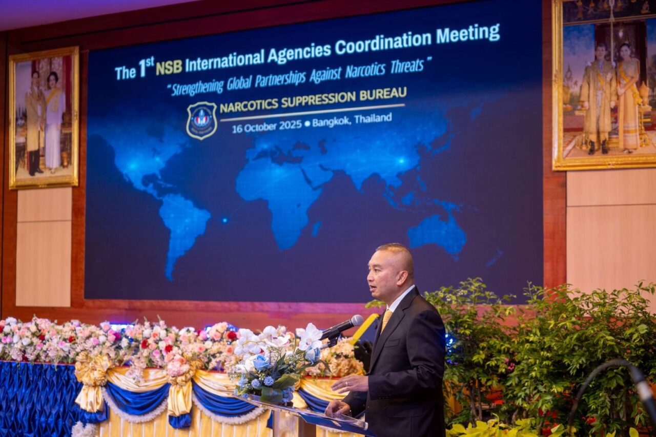 เมื่อวันที่ 17 ต.ค. พล.ต.ท.อาชยน ไกรทอง ผู้บัญชาการตำรวจปราบปรามยาเสพติด (ผบช.ปส.) จัดงาน The 1st NSB – International Agencies Coordination Meeting ประชุมหารือเจ้าหน้าที่ประสานงานด้านยาเสพติดและหน่วยงานต่างประเทศที่มีความร่วมมือด้านการปราบปรามยาเสพติดกับประเทศไทย