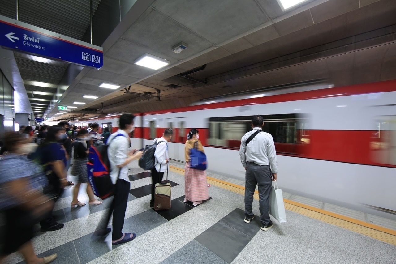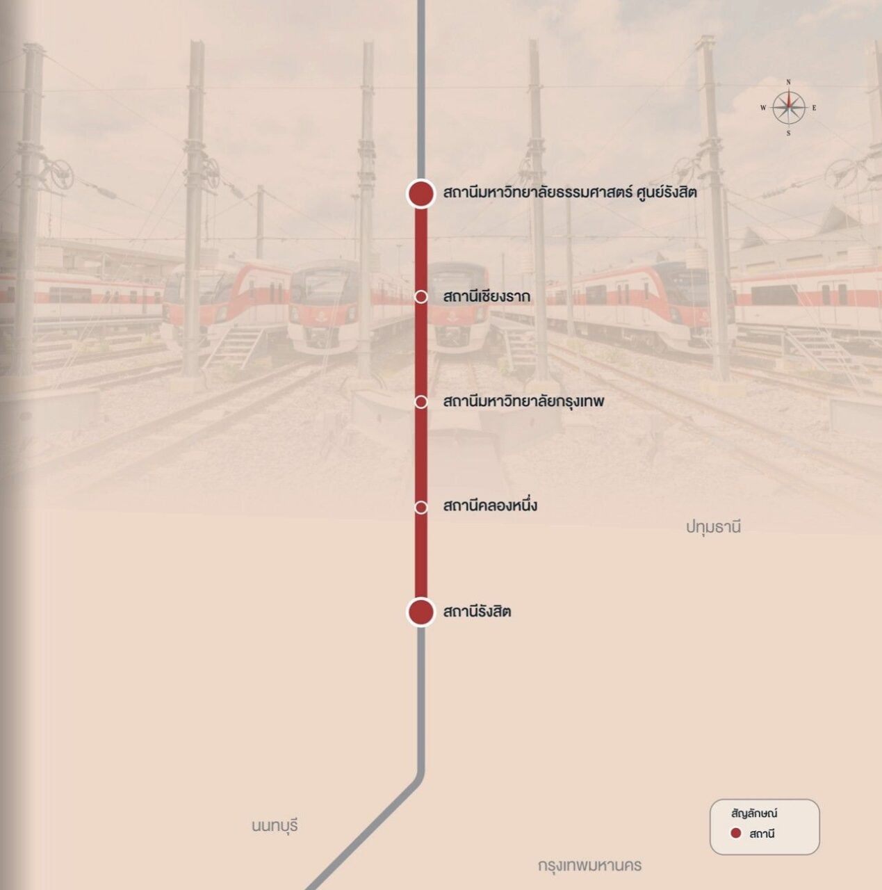 บริษัท รถไฟฟ้า ร.ฟ.ท. จำกัด (รฟฟท.) ผู้ให้บริการรถไฟฟ้าสายสีแดงเส้นทางบางซื่อ-รังสิต และบางซื่อ-ตลิ่งชันในปัจจุบัน จะเดินรถต่อเนื่องจากเส้นทางสายหลักทั้ง 2 ช่วง โดยสายรังสิต-มธ. มี 4 สถานีได้แก่ สถานีคลองหนึ่ง, สถานีมหาวิทยาลัยกรุงเทพ, สถานีเชียงราก และสถานี มธ. ศูนย์รังสิต ใช้พื้นที่เวนคืน 14 ไร่ อยู่ในขั้นตอนขอออกพระราชกฤษฎีกาเวนคืนฯ