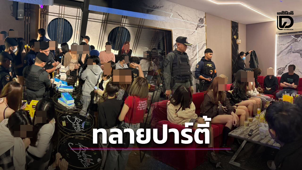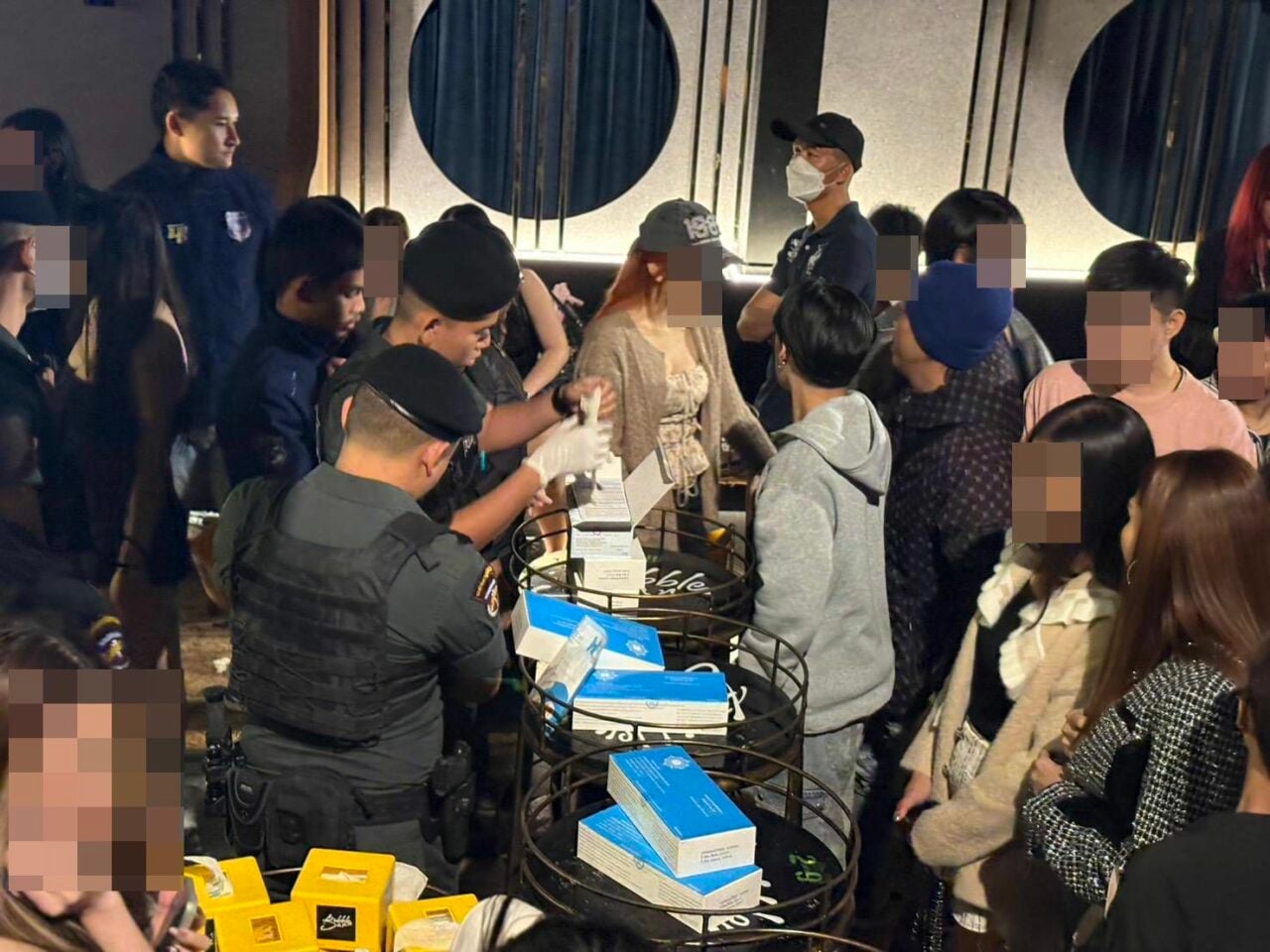 ตรวจสอบที่ร้านไวน์ บลา บาร์ พบว่ามีการปาร์ตี้ยาในห้องคาราโอเกะห้องเบอร์ 4 และ 7 จึงทำการจับกุมนักท่องเที่ยวที่เสพยาเสพติดให้โทษประเภท 2 (ยาเค) ทั้งหมด 15 คน จับกุมผู้ต้องหาครอบครองยาเสพติดให้โทษประเภท 1, 2 (ยาเค, ยาไอซ์, ยาอี) พร้อมของกลาง ยาเค 2 ถุง รวม 2 กรัม ยาไอซ์ 2 ถุง รวม 2 กรัม และขนม (ยาอี) 1 เม็ด