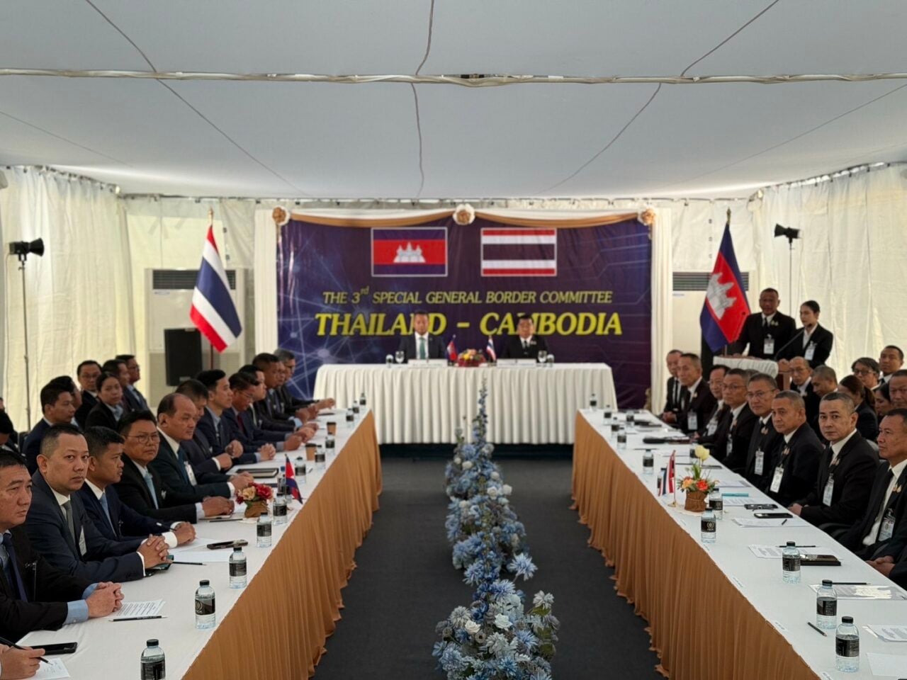 พล.อ.ณัฐพล นาคพาณิชย์ รัฐมนตรีว่าการกระทรวงกลาโหม ประธาน GBC ฝ่ายไทย เดินทางมาถึง 09.00 น. ขณะกัมพูชานำโดยพล.อ.เตีย เซ็ยฮา รัฐมนตรีว่าการกลาโหมกัมพูชาพร้อม พล.ต.แญม โบราเดน รองหัวหน้าสำนักงานรัฐมตรีว่าการกลาโหมและประธานเลขานุการคณะกรรมการ GBC กัมพูชา และคณะทั้งทหารและพลเรือน เดินทางมาถึงด่านถาวรบ้านผักกาด ในเวลา 09.30 น. จากนั้นทั้งสองฝ่ายได้เข้าไปหารือกันภายในห้องประชุมอาคารชุดควบคุมทหารพรานนาวิกโยธินที่ 4 นาน 30 นาที