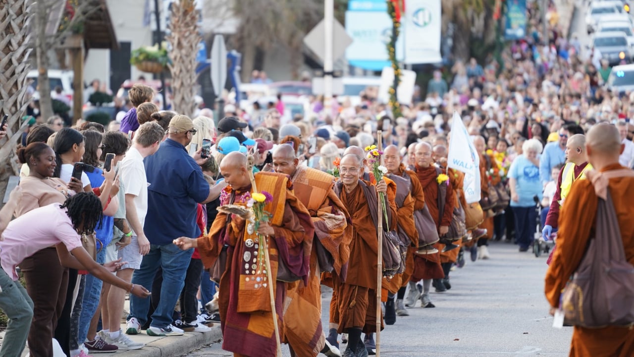กลุ่มพระสงฆ์พุทธ จากวัด Huong Dao Vipassana Bhavana ใน Fort Worth รัฐเท็กซัส กำลังเดินเท้าเป็นการเดินธุดงค์ยาว ประมาณ 2,300 ไมล์ (ราว 3,700 กม.) ข้ามสหรัฐ จากเท็กซัสไปยังกรุงวอชิงตัน ดี.ซี. ในภารกิจเดินธุดงค์เพื่อเผยแผ่สันติภาพ ความรัก ความเมตตา และความสามัคคี ในสังคม โดยมีการวางแผนว่าจะเดินผ่าน 10 รัฐ และใช้เวลาราว 110–120 วัน ในการเดินเท้าทั้งหมด