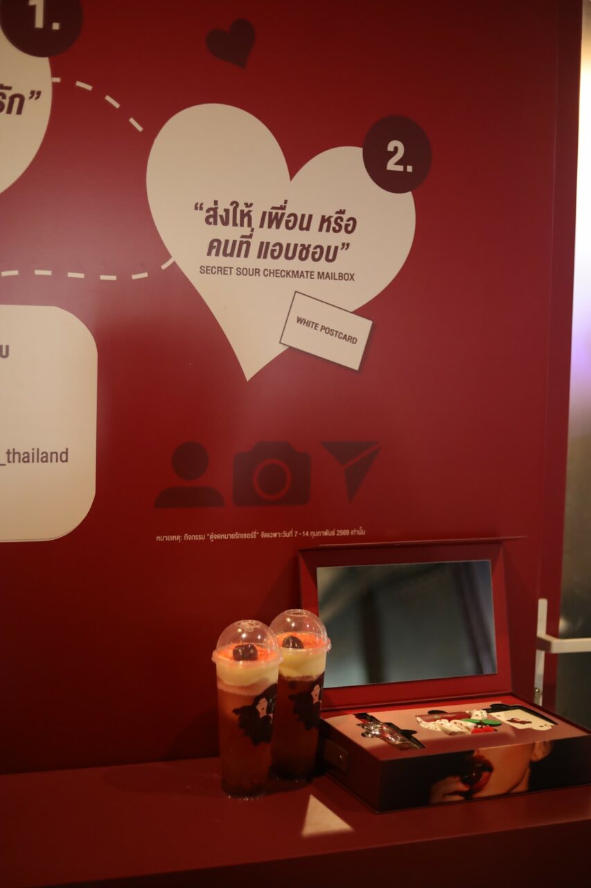โดย Nose Tea สาขาสยามเซ็นเตอร์ ชั้น 2 เปลี่ยนร้านให้เป็นธีม Heart & Checkmate มีโซนไพ่เสี่ยงทายรัก (A, J, Q, K) ให้ได้เช็กอาการหัวใจ และที่ห้ามพลาดคือ “ตู้จดหมายรักเชอร์รี่”