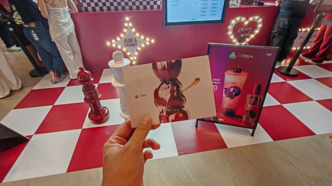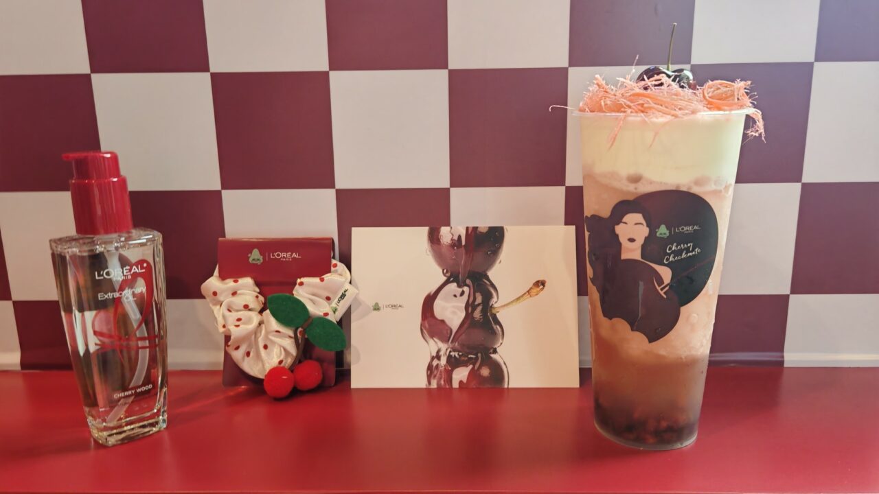 Nose Tea x L’Oreal Paris ตีโจทย์ความงามจากออยล์น้ำหอมบำรุงผมตัวดัง ออกมาเป็นเครื่องดื่มที่ “สวยทั้งรูป จูบก็หอม” ในชื่อเมนูสุดคูลว่า “Cherry Checkmate” เบสด้วยชาเขียวมะลิเกล็ดหิมะ หอมฟุ้งละมุนใจ เย็นสดชื่นถึงขีดสุด ด้านล่างอัดแน่นด้วยเนื้อเชอร์รี่สด ผสมกับคริสตัลเยลลี่ เคี้ยวหนุบหนับสู้ฟัน ออนท็อปด้วยครีมชีสที่จริงใจตามฉบับ Nose Tea แต่ความเก๋คือมี “สายไหมของเด็ดจากอยุธยา” วางอยู่ข้างบน! เพิ่มความหวานละมุนแบบไทยคราฟต์ ปิดท้ายด้วยเชอร์รี่สดลูกโตๆ อีกหนึ่ง!