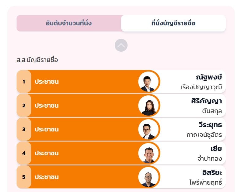 2.พรรคประชาชน 9,731,942 คะแนน 116 ที่นั่ง (85+31)