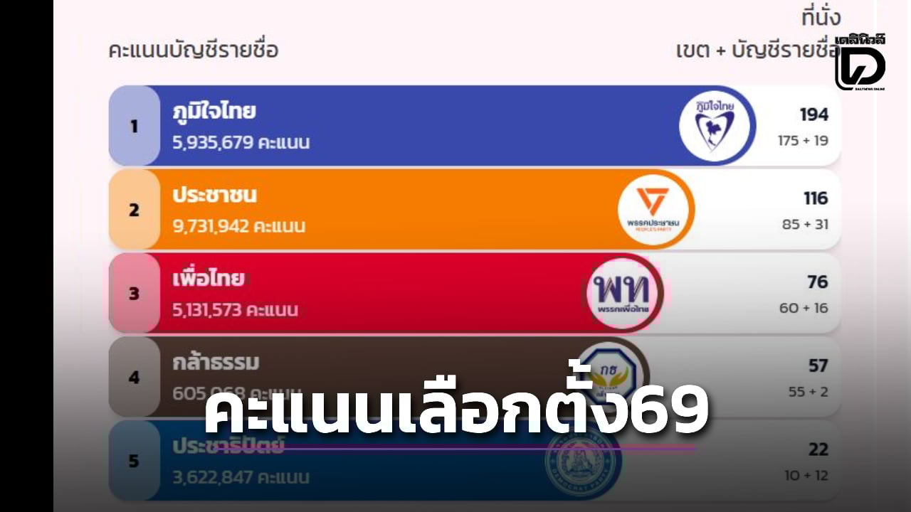 เมื่อวันที่ 9 ก.พ. ผู้สื่อข่าวรายงานผลคะแนนการเลือกตั้ง 69 หลังนับคะแนนไป 92% ณ เวลา 06.00 น. วันที่ 9 ก.พ. 69