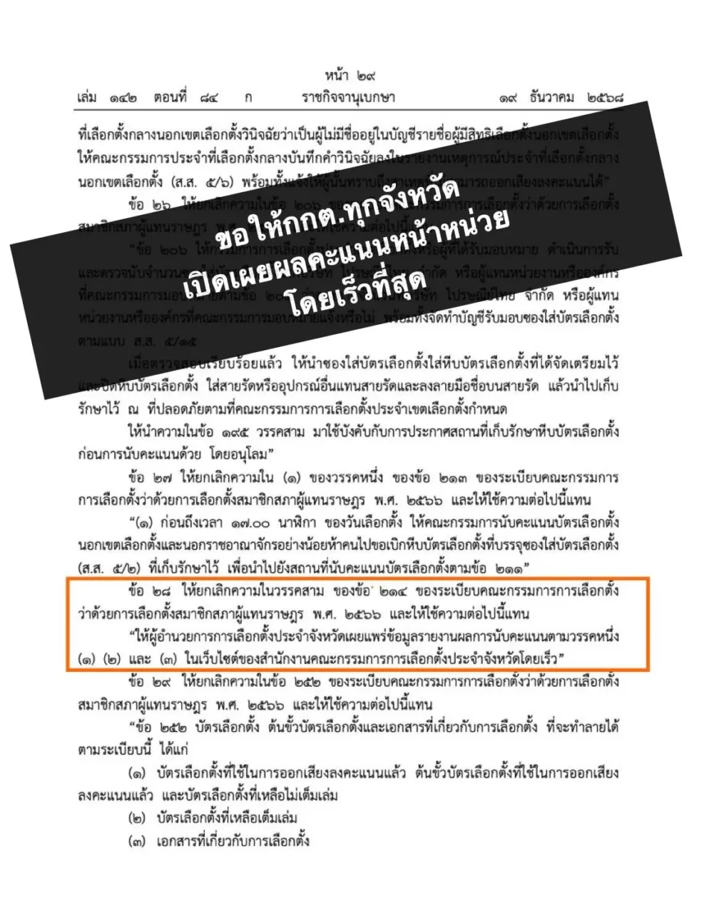 -กกต. ต้องเปิดเผยข้อมูล รีบโชว์แบบฟอร์ม ส.ส. 5/18 (ผลคะแนนรายหน่วย) ให้ชาวบ้านตรวจสอบได้ทันที
