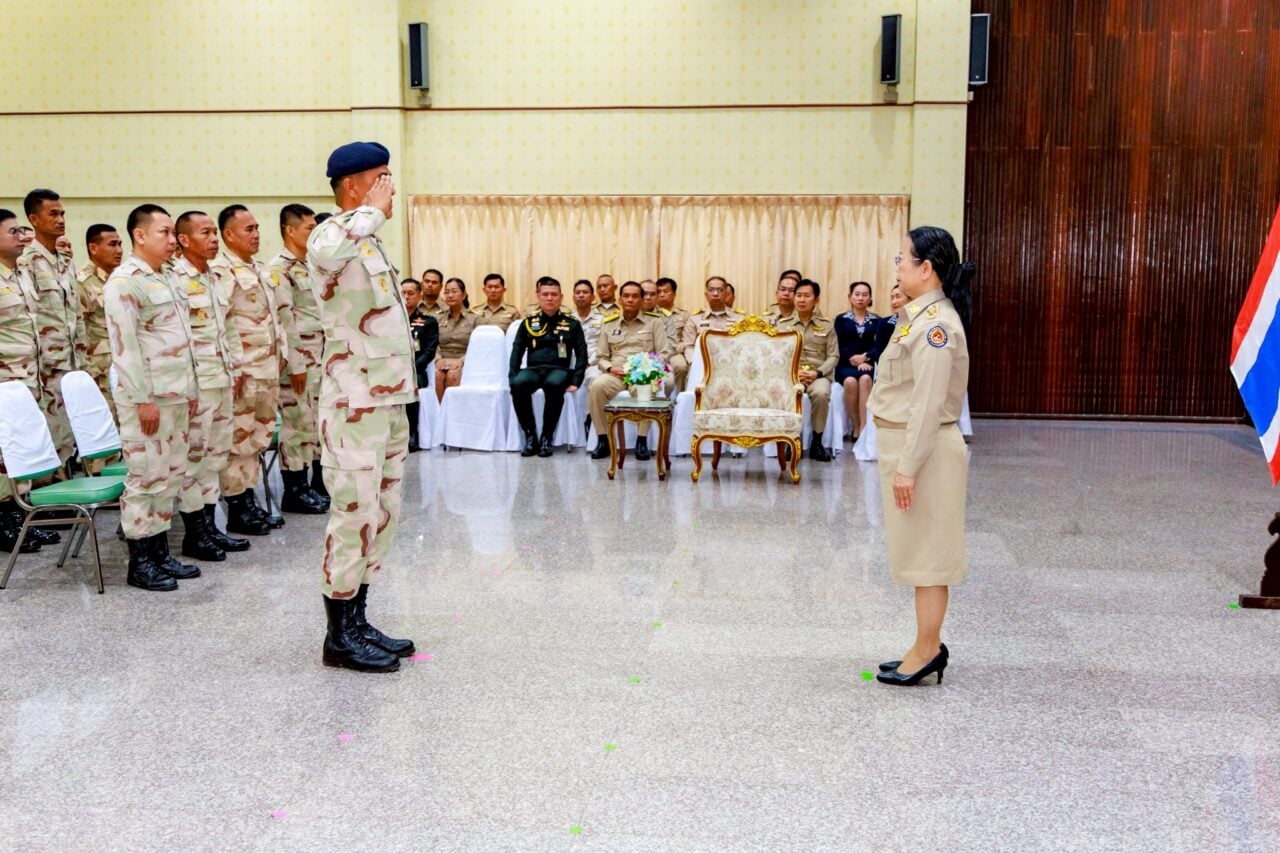 นายกองเอกวันเพ็ญ ได้ร่วมกันประกอบพิธีทางศาสนา โดยมีพระภิกษุสงฆ์ 9 รูป เจริญพระพุทธมนต์และประพรมน้ำพระพุทธมนต์เพื่อความเป็นสิริมงคล จากนั้นกำลังพลได้ร่วมพิธีทำความเคารพธงชัยประจำกอง กล่าวคำปฏิญาณตน และรับฟังสารจากผู้บัญชาการกองอาสารักษาดินแดน เพื่อยึดมั่นในอุดมการณ์และการปฏิบัติหน้าที่อย่างเต็มกำลังความสามารถ