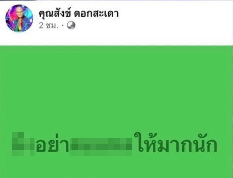 กลายเป็นประเด็นร้อนที่ทำเอาตลกชื่อดังอย่าง “สังข์ ดอกสะเดา” ถึงกับนั่งไม่ติด ต้องรีบออกมาโพสต์ชี้แจงเป็นการด่วน หลังจากที่ก่อนหน้านี้เจ้าตัวได้โพสต์ข้อความสุดเดือดผ่านเฟซบุ๊กส่วนตัวว่า “Xงอย่ามาตอแหXให้มากนัก” จนกลายเป็นชนวนเหตุให้ชาวเน็ตและเพจต่าง ๆ นำไปเชื่อมโยงกับกระแสข่าวรอยร้าวในครอบครัวของตลกอาวุโสชื่อดังอย่าง “พี่เด๋อ ดอกสะเดา” และ “ปู กนกวรรณ” ที่มีข่าวเลิกรา ปิดฉากรักอันยาวนานนั้น