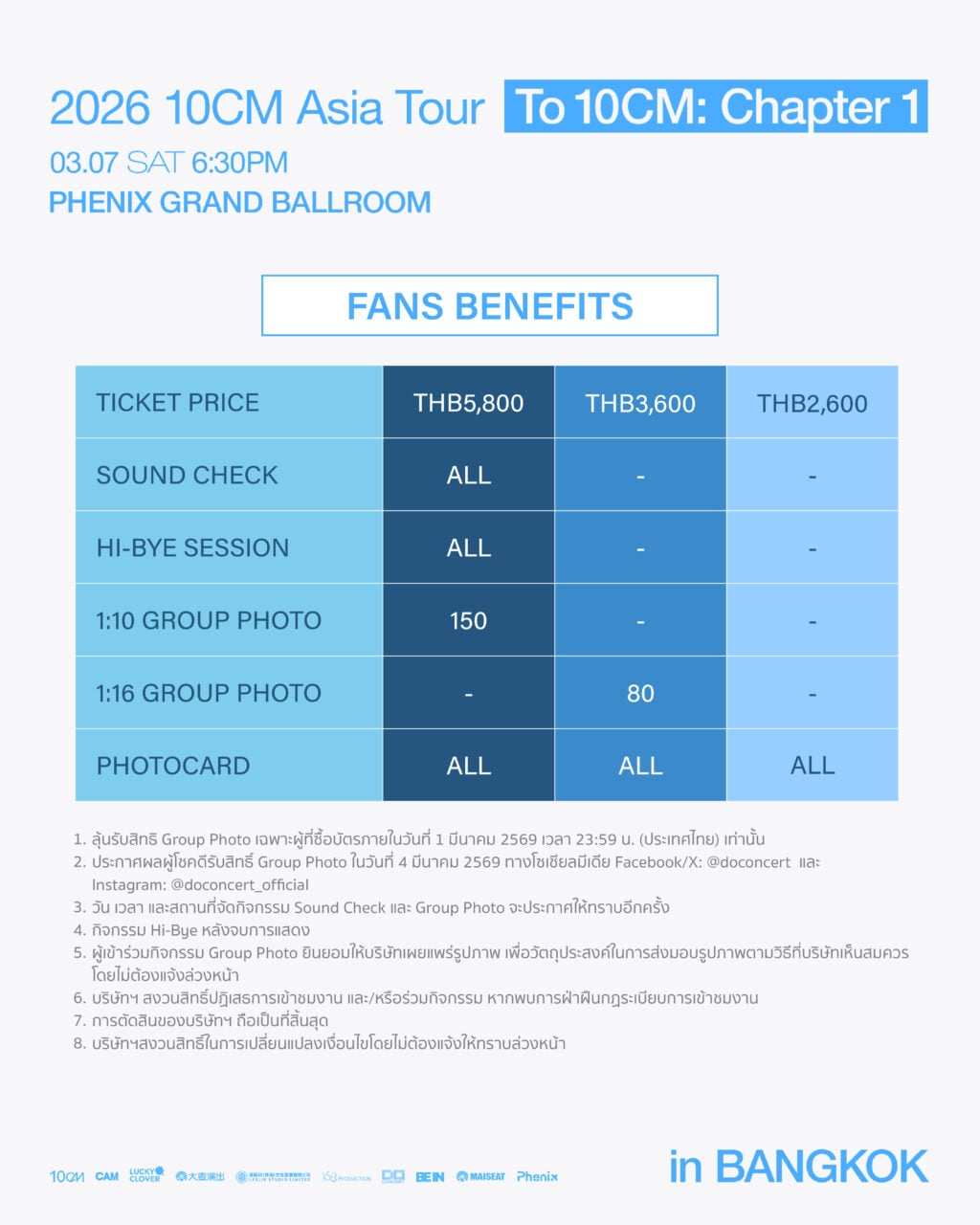 มาร่วมสร้างค่ำคืนที่น่าจดจำไปด้วยกัน แล้วพบกัน 7 มีนาคมนี้ ที่กรุงเทพ! ติดตามรายละเอียดเพิ่มเติมสิทธิพิเศษ และอื่นๆ ได้ที่โซเชียลมีเดีย : Do Concert และสามารถซื้อบัตรได้แล้ววันนี้ที่ Do Concert Ticket (https://bit.ly/To10CM_Bangkok) ,DAMAI และ MAISEAT