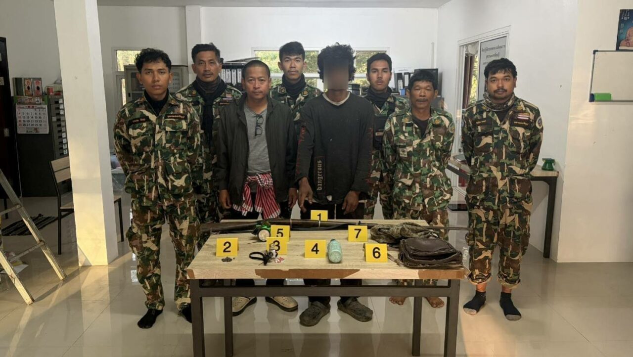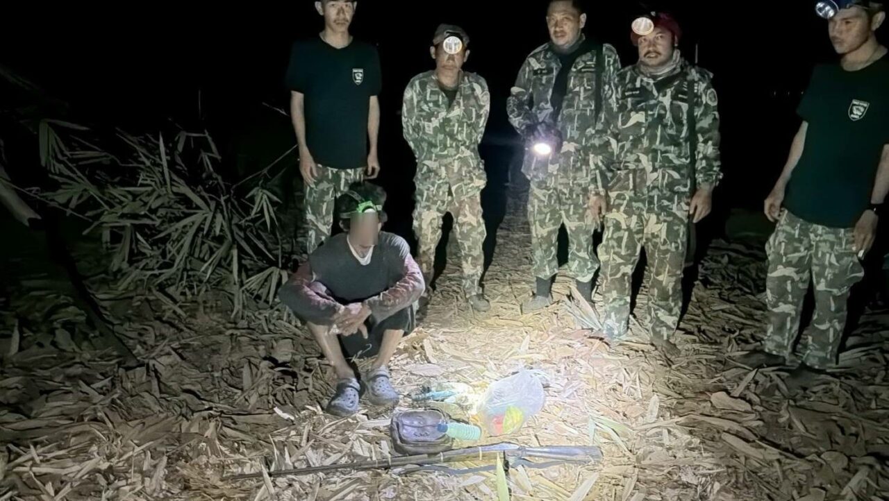 ต่อมาเวลา 01.30 น. พบเห็นบุคคลสาดส่องไฟฉายไปมาอย่างผิดปกติ ภายในพื้นที่ป่ามีสัตว์ป่าอาศัยอยู่หลายชนิด เจ้าหน้าที่จึงแสดงตัวพบผู้ชาย 1 คน ทราบชื่อ นายสุนทร (สงวนนามสกุล)อายุ 40 ปี พักอาศัยอยู่ใน อ.หัวหิน จ.ประจวบคีรีขันธ์ ให้การว่า ได้นำอาวุธปืนพร้อมเครื่องกระสุน และอุปกรณ์ต่างๆ เข้าไปในเขตอุทยานแห่งชาติกุยบุรี เพื่อทำการล่าสัตว์ป่า
