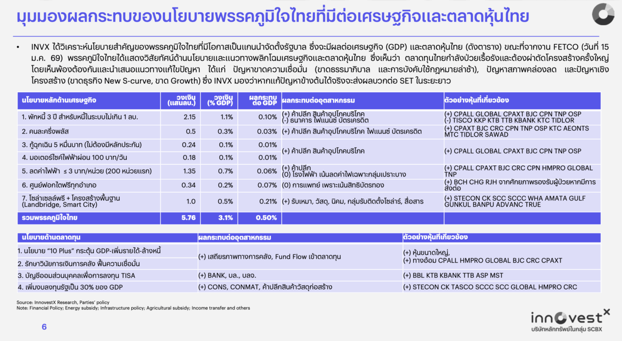 สรุป “หุ้นไทย” ได้ประโยชน์จากนโยบายเศรษฐกิจพรรคภูมิใจไทย