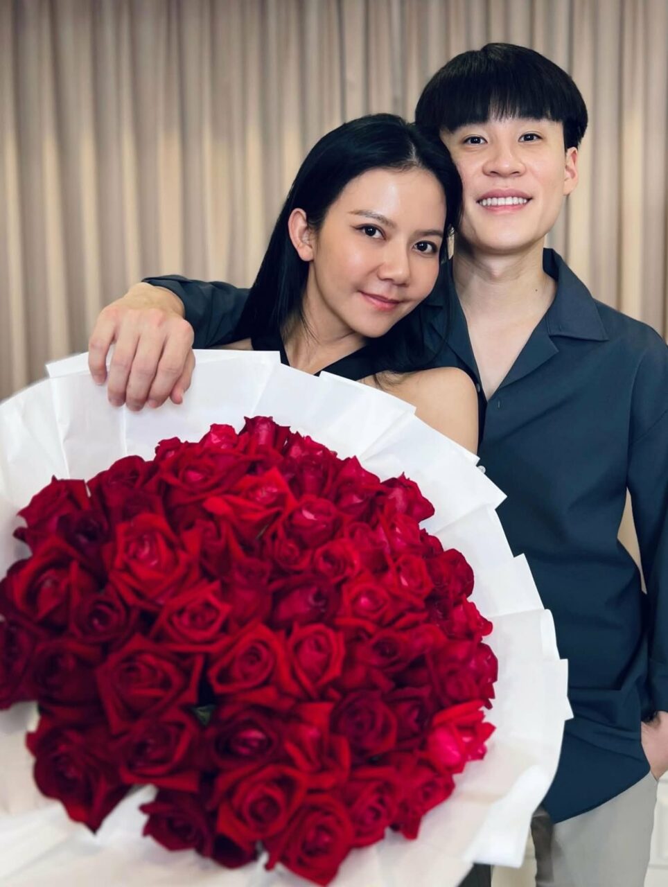 ส่วนคู่ของนักร้องสาวอารมณ์ดี “จ๊ะ นงผณี” และหวานใจหนุ่ม “บิ๊ก” ปีนี้มาพร้อมความหมายที่ลึกซึ้ง โดยฝ่ายชายมอบดอกกุหลาบแดงช่อยักษ์เพื่อเป็นกำลังใจให้สาวจ๊ะในช่วงที่กำลังเครียดเรื่องอาการป่วยของคุณพ่อ โดยจ๊ะก็ได้โพสต์ภาพ พร้อมข้อความว่า “ขอบคุณ.. ในวันที่ข้าอ่อนแอจะมีเอ็งที่คอยจับมือ” ถือเป็นภาพที่พิสูจน์ว่าในวันลำบาก กำลังใจจากคนข้างกายคือสิ่งที่สำคัญที่สุด