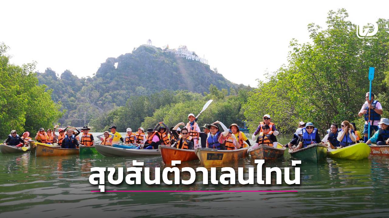 เมื่อวันที่ 14 ก.พ. ที่บริเวณสวนเฉลิมพระเกียรติฯ 80 พรรษา วัดธรรมิการามวรวิหาร (วัดใน หรือ วัดเขาช่องกระจก) อ.เมืองประจวบฯ นายกมล แก้วเทศ นายกเทศมนตรีเมืองประจวบฯ พร้อมด้วยคณะผู้บริหาร ผู้อำนวยการกองการท่องเที่ยวและกีฬา และพนักงานเทศบาล พาคู่รัก 14 คู่ ร่วมกิจกรรม “พายเรือคายัค ปลูกรักนิรันดร์” สัมผัสธรรมชาติที่งดงามร่วมกันถ่ายภาพ ณ อุโมงค์ป่าโกงกางที่สวยงามที่สุด และร่วมกันปลูกต้นกล้าแห่งรักและต้นโปรงทองในวันวาเลนไทน์ เพื่อให้ความรักและความสัมพันธ์เติบโตอย่างยั่งยืนคู่กับเมืองประจวบฯสืบไป