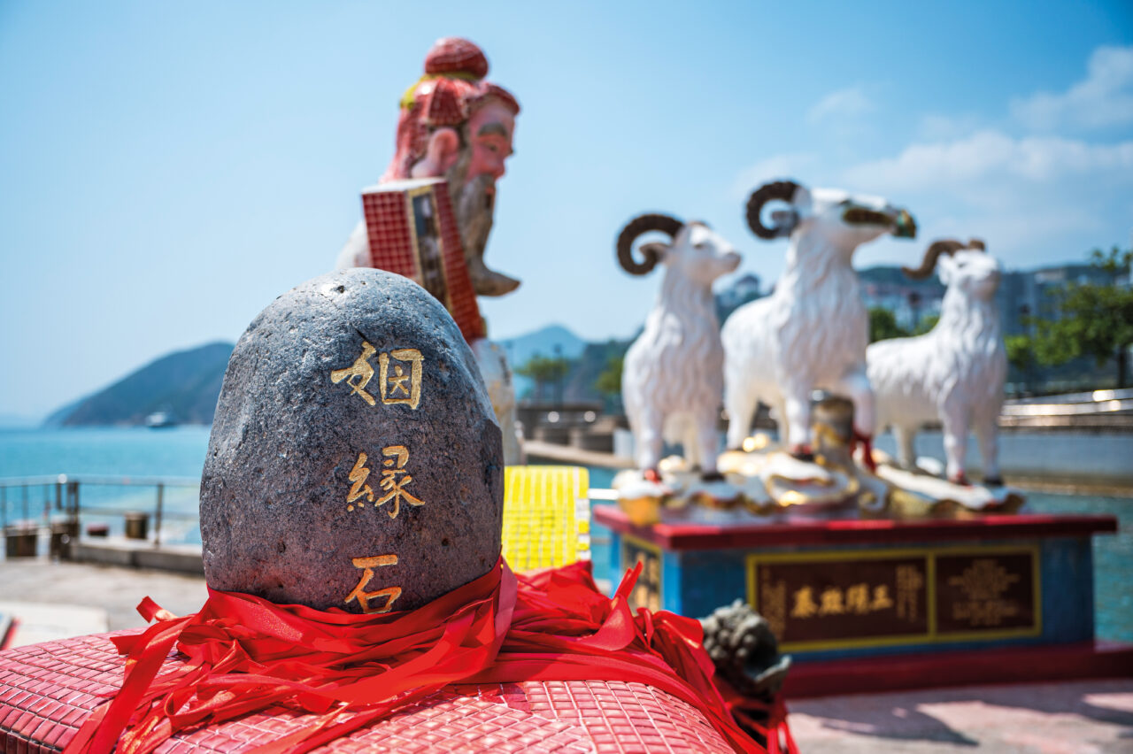 ปีจอ (สุนัข) เทพประจำปีคือ “ผู้เฒ่าจันทรา” หรือ “เทพหยืดว์-โหลว” (Yue Lao) เทพเจ้าแห่งความรักและการแต่งงาน อยู่ที่วัดหวังต้าเซียนเช่นกัน เทคนิคการขอพรจากผู้เฒ่าจันทรา เริ่มด้วยเกี่ยวนิ้วมือเข้าด้วยกันเพื่อให้คล้องด้ายแดงที่นิ้วได้ จากนั้นเดินไปหารูปปั้นเด็กผู้ชายหรือเด็กผู้หญิง ขึ้นอยู่กับเพศของคนที่เราหมายปอง แล้วใช้มือที่เกี่ยวด้ายแดงปัดลงตรงเท้าของรูปปั้น แล้วจึงนำด้ายแดงไปผูกไว้ระหว่างรูปปั้นผู้เฒ่าจันทรา และรูปปั้นเด็กชาย/เด็กหญิง และตั้งจิตอธิษฐานขอพรต่อหน้าผู้เฒ่าจันทรา นอกจากนี้ยังสามารถไปที่ วัดเจ้าแม่ทับทิมและศาลเจ้าแม่กวนอิม รีพัลส์เบย์ (Tin Hau Temple & Kwun Yam Shrine, Repulse Bay) ศาลเจ้าแม่กวนอิมและเจ้าแม่ทับทิมริมทะเล นอกจากจะมีฮวงจุ้ยเป็นเลิศแล้ว ยังเป็นที่ประดิษฐานเทพหลายองค์ รวมไปถึงผู้เฒ่าจันทราด้วย