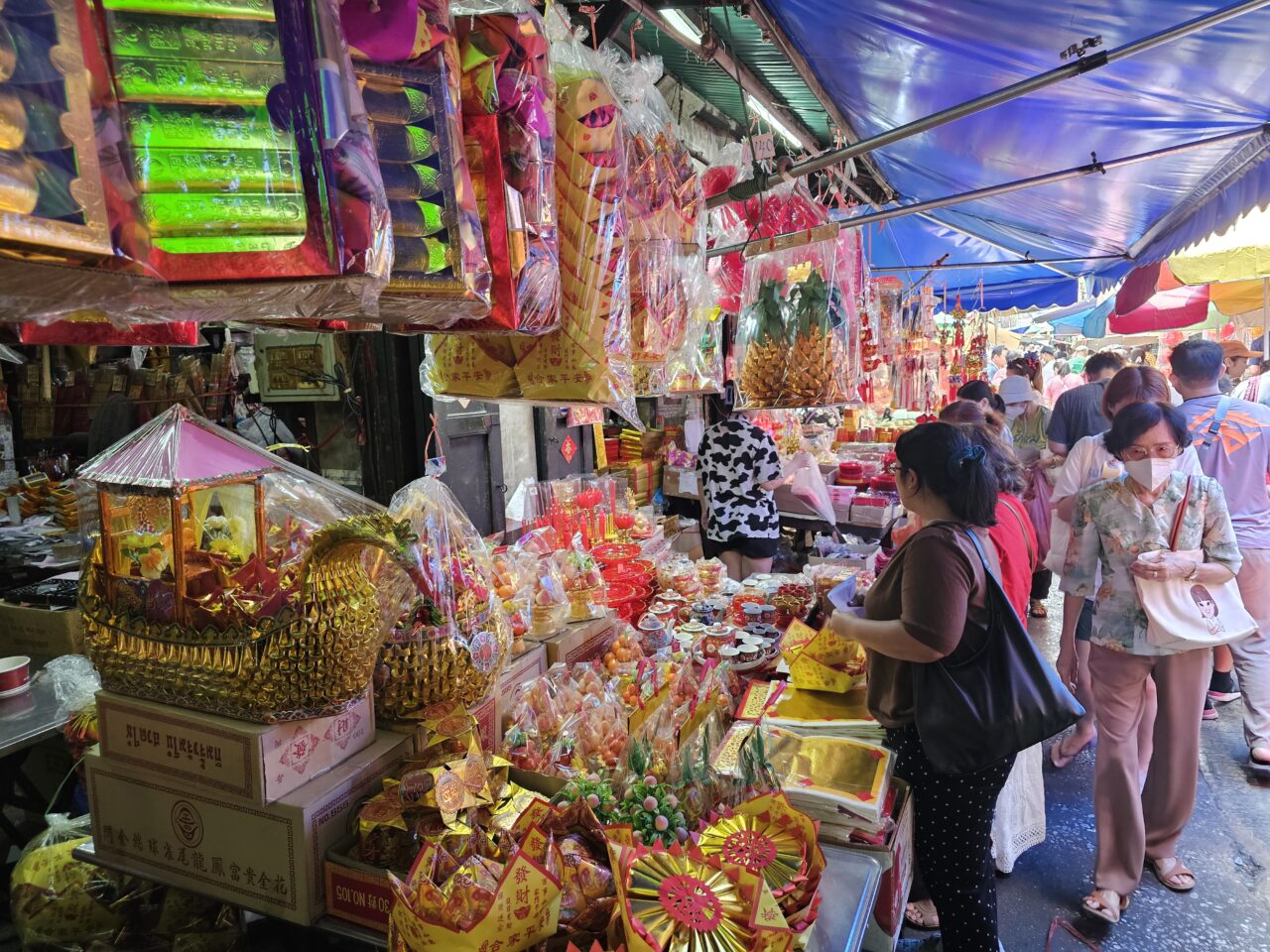 โดยสินค้าที่ได้รับความนิยมสูงสุดยังคงเป็นกลุ่มของสดสำหรับประกอบพิธีไหว้ ทั้งหมู เห็ด เป็ด และไก่ รวมถึงเครื่องเซ่นไหว้ต่าง ๆ ที่มีการปรับตัวตามกลไกตลาด นอกจากกลุ่มของสดแล้ว สินค้าแฟชั่นอย่างชุดกี่เพ้าและของมงคลสำหรับประดับตกแต่งบ้านเรือนเพื่อเสริมสิริมงคล ก็ได้รับความสนใจจากผู้จับจ่ายอย่างมากเช่นกัน