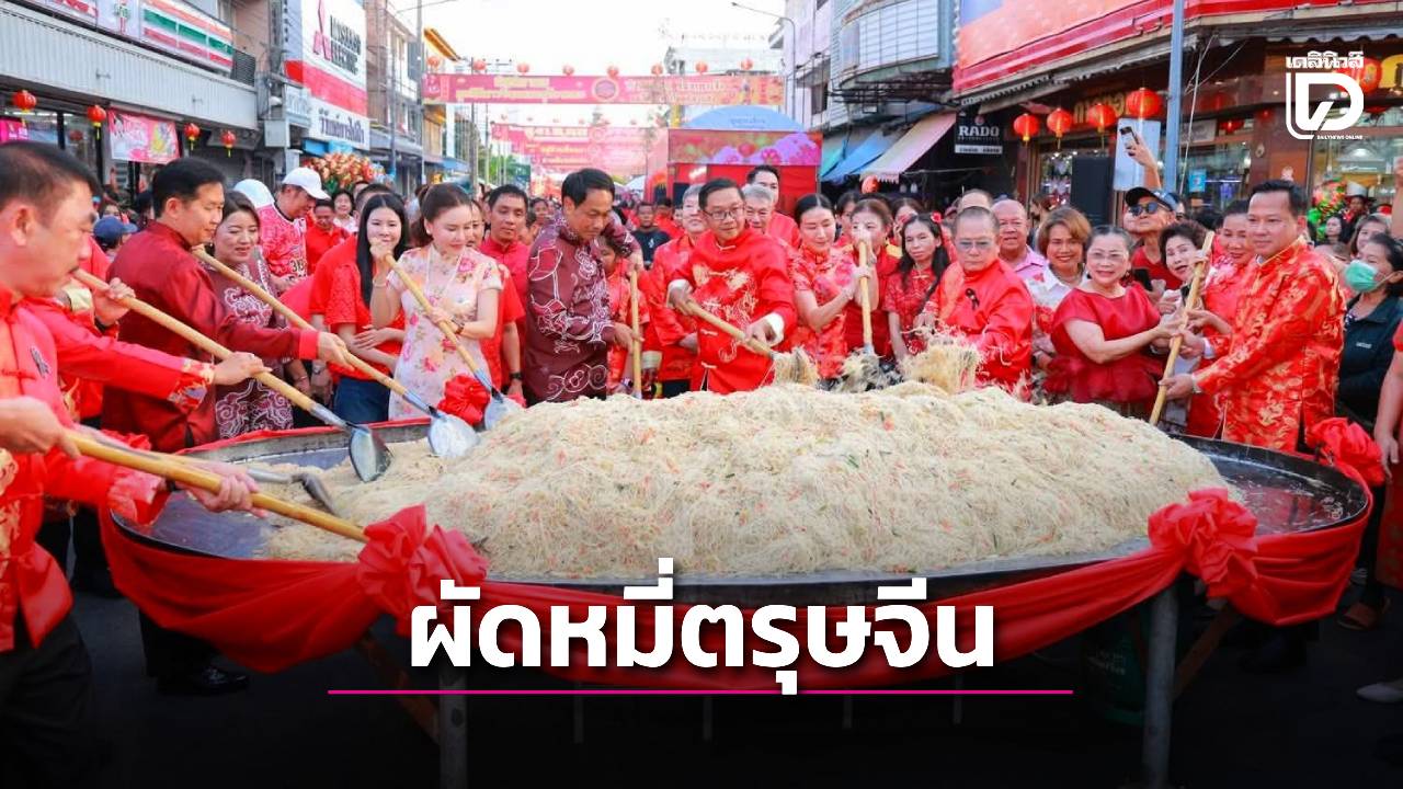 เมื่อวันที่ 17 ก.พ. ร้อยตำรวจโท ภพชนก ชลานุเคราะห์ ผู้ว่าราชการจังหวัดเพชรบุรี เปิดงานเทศกาลตรุษจีน สืบสานประเพณีวัฒนธรรมชาวไทยเชื้อสายจีน จ.เพชรบุรี ประจำปี 2569 ณ บริเวณถนนสุรินทรฦๅชัย (ถนน 18 เมตร) ต.ท่าราบ อ.เมืองเพชรบุรี จ.เพชรบุรี และร่วมกับ นายกิตติพงษ์ เทพพานิช นายกเทศมนตรีเมืองเพชรบุรี นางณัฐฐินีย์ คงบูชาเกียรติ นายกเหล่ากาชาดจังหวัดเพชรบุรี รองผู้ว่าราชการจังหวัดเพชรบุรี นายกสมาคมชาวจีนเพชรบุรี ประธานสหสมาคมมูลนิธิชาวจีนเพชรบุรี พร้อมคณะผู้บริหารเทศบาลเมืองเพชรบุรี ผัดหมี่ซั่วกระทะยักษ์ แจกจ่ายให้ผู้มาร่วมงานเพื่อความเป็นสิริมงคลตามความเชื่อหากได้รับประทานผัดหมี่ซั่ว ในวันตรุษจีนอายุจะยืนยาว จากนั้น ได้ร่วมสักการะเทพเจ้า เจ้าแม่กวนอิม เทพเจ้ากวนอู เทพเจ้าไฉ่ซิงเอี๊ย เทพเจ้าไท้ส่วยเอี๊ย และพระสังกัจจาย เพื่อขอพรความเป็นศิริมงคล ท่ามกลางนักท่องเที่ยว และประชาชนชาวไทยเชื้อสายจีนเข้าร่วมงาน จำนวนมาก