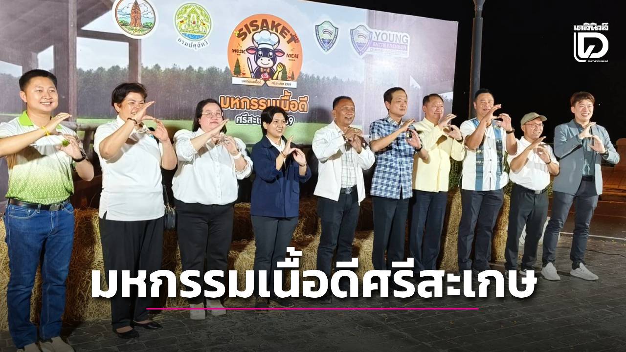 ที่สวนสาธารณะลานออดหลอด อ.เมือง จ.ศรีสะเกษ นายอนุรัตน์ ธรรมประจําจิต ผวจ.ศรีสะเกษ พร้อมด้วย นายนัทธ์เวโรจน์ บูชาพัฒน์ ปศุสัตว์จังหวัดศรีสะเกษ นายรัฐวิทย์ อังคสกุลเกียรติ ประธานหอการค้าจังหวัดศรีสะเกษและนายจํานงค์ จังอินทร์ ผู้แทนกลุ่มเกษตรกรอัมรีฟาร์ม ได้ร่วมกันแถลงข่าวเตรียมการจัดงาน “มหกรรมเนื้อดีศรีสะเกษ Music and Meat Festival” ซึ่งกำหนดจัดขึ้นในระหว่างวันที่ 5-8 มี.ค. 2569 ที่บริเวณสวนสาธารณะลานออดหลอด จ.ศรีสะเกษ