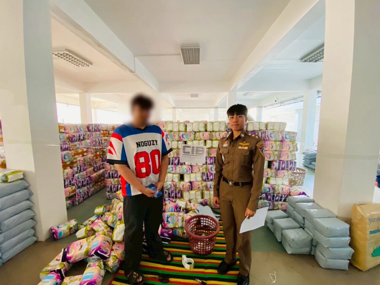 พ.ต.อ.วีระพงษ์ คล้ายทอง ผกก.4 บก.ปคบ. กล่าวว่า จากการสืบสวนมีการจำหน่ายผ้าอนามัยเถื่อนผ่านแพลตฟอร์มออนไลน์ เจ้าหน้าที่จึงเข้าตรวจค้นโกดังในเขตบางขุนเทียน พบหญิงอายุ 32 ปี รับหน้าที่ดูแลสถานที่ รับสินค้าจากจีนมาเก็บและแพ็กส่งตามออร์เดอร์ที่แอดมินชาวจีนสั่ง มียอดขายวันละประมาณ 5,000 ชิ้น ดำเนินการมาแล้วราว 8 เดือน จากนั้นขยายผลตรวจค้นโกดังอีกแห่งใน จ.สมุทรสาคร พบชายอายุ 25 ปี ดูแลสถานที่ พร้อมสินค้าจำนวนมาก