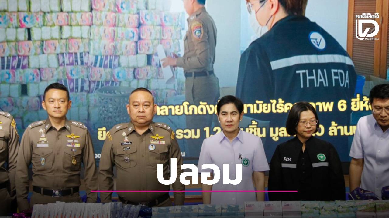 เมื่อวันที่ 18 ก.พ. พล.ต.ท.กฤษฎา กาญจนอลงกรณ์ ผู้ช่วย ผบ.ตร. พล.ต.ท.ณัฐศักดิ์ เชาวนาศัย ผบช.ก. พล.ต.ต.คงกฤช เลิศสิทธิกุล ผบก.ปคบ. พ.ต.อ.อนุวัฒน์ รักษ์เจริญ รอง ผบก.ปคบ. พร้อมด้วย ภญ.สุภัทรา บุญเสริม เลขาธิการคณะกรรมการอาหารและยา นพ.รุ่งฤทัย มวลประสิทธิ์พร รองเลขาธิการคณะกรรมการอาหารและยา และ ภก.เลิศชาย เลิศวุฒิ รองเลขาธิการคณะกรรมการอาหารและยา ร่วมแถลงผลทลายโกดังลักลอบนำเข้าและจำหน่ายผ้าอนามัยผิดกฎหมายจากประเทศจีน ตรวจค้น 2 จุดในพื้นที่กรุงเทพฯ และสมุทรสาคร ยึดของกลางผ้าอนามัยไม่มีเลขจดแจ้งและฉลากไม่ถูกต้องกว่า 1.2 ล้านชิ้น มูลค่ากว่า 20 ล้านบาท