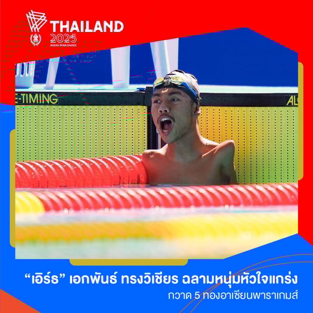 @ “เอิร์ธ” เอกพันธ์ ทรงวิเชียร นักกีฬาว่ายน้ำคนพิการทีมชาติไทย วัย 24 ปี จากจังหวัดพระนครศรีอยุธยา ผงาดขึ้นโพเดียมในศึก อาเซียนพาราเกมส์ พร้อมผลงานอันยอดเยี่ยมที่สร้างความภาคภูมิใจให้แฟนกีฬาชาวไทย โดยกวาดไป 5 เหรียญทอง กับอีก 1 เหรียญเงิน แม้จะเกิดมาโดยไม่มีแขนทั้งสองข้าง แต่เจ้าตัวไม่เคยมองว่านั่นคือข้อจำกัดของชีวิต ด้วยความรักและการสนับสนุนจากครอบครัว ทำให้เขาเติบโตขึ้นพร้อมความมั่นใจ ไม่รู้สึกด้อยค่า และเลือกใช้กีฬาเป็นเวทีพิสูจน์ตัวเอง และความสำเร็จครั้งนี้ไม่เพียงเป็นรางวัลแห่งความมุ่งมั่นของเจ้าตัว หากยังเป็นผลลัพธ์จากการสนับสนุนอย่างเป็นระบบของ การกีฬาแห่งประเทศไทย และความร่วมมือจากทุกภาคส่วนที่ร่วมกันผลักดันนักกีฬาคนพิการไทยอย่างรอบด้าน ทั้งการพัฒนาการฝึกซ้อมอย่างเข้มข้น การเตรียมความพร้อมสู่มาตรฐานสากล การนำวิทยาศาสตร์การกีฬาเข้ามาเสริมศักยภาพอย่างต่อเนื่อง ตลอดจนการเปิดโอกาสสู่เวทีแข่งขันระดับนานาชาติ เพื่อยกระดับขีดความสามารถของนักกีฬาไทย