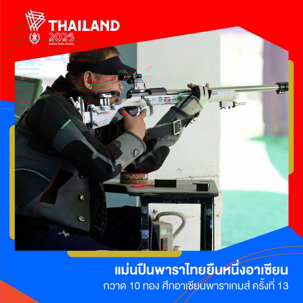 @ ทัพนักกีฬายิงปืนพาราทีมชาติไทยประกาศศักดาเบอร์ 1 อาเซียน หลังผนึกกำลังโชว์ความแม่นยำ กวาดรวม 10 เหรียญทอง ในการแข่งขัน อาเซียนพาราเกมส์ ครั้งที่ 13 ที่ประเทศไทยเป็นเจ้าภาพ สร้างผลงานยอดเยี่ยมและความภาคภูมิใจให้กับแฟนกีฬาชาวไทย ซึ่งความสำเร็จครั้งนี้เกิดขึ้นภายใต้การสนับสนุนของ การกีฬาแห่งประเทศไทย ที่เดินหน้าพัฒนาศักยภาพนักกีฬาอย่างรอบด้าน ทั้งด้านการฝึกซ้อม วิทยาศาสตร์การกีฬา และการปรับปรุงสนามยิงปืนให้ได้มาตรฐานสากล เพื่อรองรับการแข่งขันระดับนานาชาติ