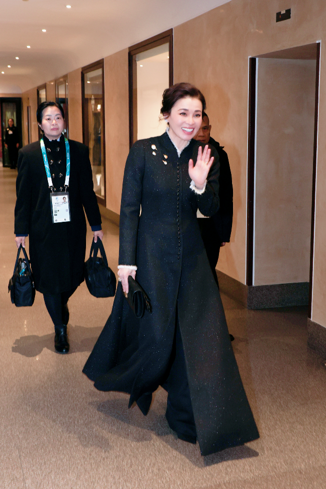 เมื่อรถยนต์พระที่นั่งถึงยังสนามแข็งขันฮอกกี้น้ำแข็งฯ นายลุก ตาร์ดิฟ ประธานสหพันธ์ฮอกกี้น้ำแข็งนานาชาติ คุณหญิงปัทมา ลีสวัสดิ์ตระกูล กรรมการโอลิมปิกสากล พร้อมด้วย นายสมศักดิ์ ลีสวัสดิ์ตระกูล คู่สมรสฯ เฝ้าทูลละอองธุลีพระบาทรับเสด็จ ในโอกาสนี้ ทอดพระเนตรการแข่งขันฮอกกี้น้ำแข็งหญิง รอบชิงเหรียญทองแดง ในมหกรรมการแข่งขันกีฬาโอลิมปิกฤดูหนาว 2026 ระหว่างทีมชาติสวีเดน กับทีมชาติสวิสเซอร์แลนด์ ตามคำกราบบังคมทูลเชิญของประธานสหพันธ์ฮอกกี้น้ำแข็งนานาชาติ ด้วยทรงดำรงตำแหน่งทูตส่งเสริมกีฬาฮอกกี้น้ำแข็งประเภทหญิงของสหพันธ์ฯ