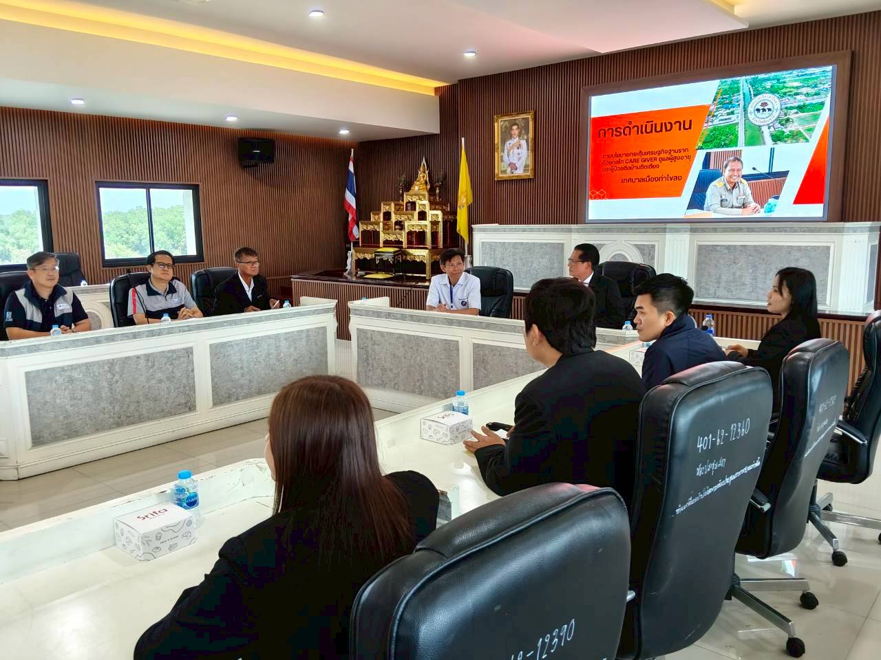 จากนั้นในช่วงบ่าย คณะเจ้าหน้าที่ได้ลงพื้นที่ติดตามการดำเนินโครงการในระดับพื้นที่ ณ เทศบาลเมืองท่าโขลง จังหวัดปทุมธานี โดยประชุมร่วมกับผู้บริหารและเจ้าหน้าที่เทศบาลเมืองท่าโขลง พร้อมตรวจเยี่ยมการปฏิบัติหน้าที่ของผู้ช่วยเหลือดูแลผู้ที่มีภาวะพึ่งพิง (Caregiver) ในพื้นที่จริง