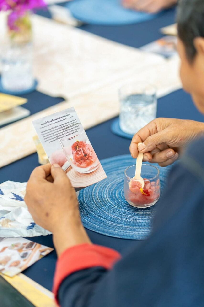 นักวิจัยโครงการสมุทรสงครามอยู่ดี นักสร้างสรรค์อาหาร อาจารย์สุถีให้มุมมองเล่าถึง บทบาทไอศกรีม เพิ่มอีกว่า ไอศกรีมนอกจากจะเป็นของหวาน ไอศกรีมยังบอกเล่าเรื่องต่างๆได้ดี ไม่ว่าจะเป็นเรื่องของวัตถุดิบ อย่างที่ผ่านมาทดลองทำ ไอศกรีมขนมจาก ถอดแบบจากขนมจากโดยศึกษาส่วนผสม