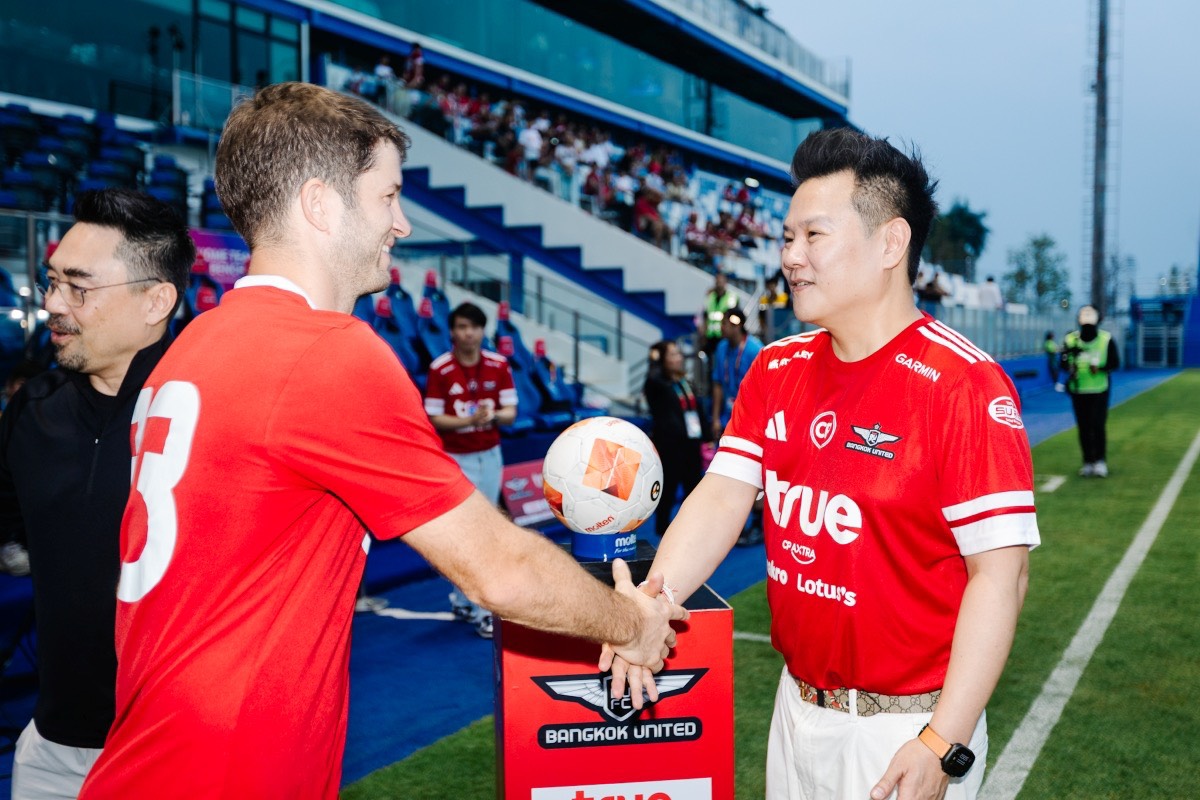 เกมใหญ่ที่แฟนบอลรอคอยกลับมาทำสนามลุกเป็นไฟอีกครั้ง เมื่อ ทรู แบงค็อก ยูไนเต็ด เปิดบ้านทรู บีจี สเตเดียม รับการมาเยือนของ เมืองทอง ยูไนเต็ด ในศึกไทยลีก 2025/26 ท่ามกลางบรรยากาศเชียร์สุดเดือดแบบ “แน่นทุกโซน” โดย ทรู คอร์ปอเรชั่น เดินหน้าสนับสนุนฟุตบอลไทยอย่างต่อเนื่อง ร่วมส่งแรงใจข้างสนาม นำโดย นายขจร เจียรวนนท์ ประธานสโมสรทรู แบงค็อก ยูไนเต็ด พร้อมด้วย บมจ.ทรู คอร์ปอเรชั่น โดย นายโอลิเวอร์ กิตติพงษ์ วีระเตชะ หัวหน้าคณะผู้บริหารด้านแบรนด์และมีเดีย ร่วมส่งพลังไปกับแฟนบอลที่พร้อมใจกันเชียร์สุดเสียงตั้งแต่นกหวีดแรก ทำให้บรรยากาศในสนามคึกคัก และสมศักดิ์ศรี “บิ๊กแมตช์ของจริง” พร้อมกันนี้ ทรูยังอัพสัญญาณ ทรู5G ให้ครอบคลุมทุกโซนของทรู บีจี สเตเดียม รองรับการใช้งานของแฟนบอลอย่างเต็มประสิทธิภาพ ทั้งการไลฟ์ แชร์โมเมนต์ และอัปโหลดความมันแบบเรียลไทม์ ด้วยสัญญาณแรงเร็ว เสถียรตลอดการแข่งขัน
