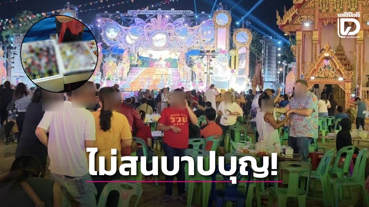 อีกทั้งยังมีการปิดประตูวัดทุกด้านเก็บบัตรจำหน่ายตั๋วเพื่อเข้าไปชมคอนเสิร์ต ในราคาบัตรละ 120 บาท เมื่อเข้าไปข้างในพบว่าเวทีคอนเสิร์ตฝั่งด้านขวามือติดกับอุโบสถ ส่วนด้านซ้ายมือมีร้านจำหน่ายเหล้า-เบียร์ อีกหลายร้าน พร้อมมีบริการเปิดโต๊ะให้ลูกค้านั่งดื่มกินอย่างสบายใจภายในวัดวาอาราม คล้ายผับบาร์ สถานบันเทิงเคลื่อนที่ เต้นรำกันอย่างสนุกสนาน ซึ่งชาวบ้านเห็นว่าไม่เหมาะสม และมีการจัดกิจกรรมลักษณะนี้บ่อยครั้ง