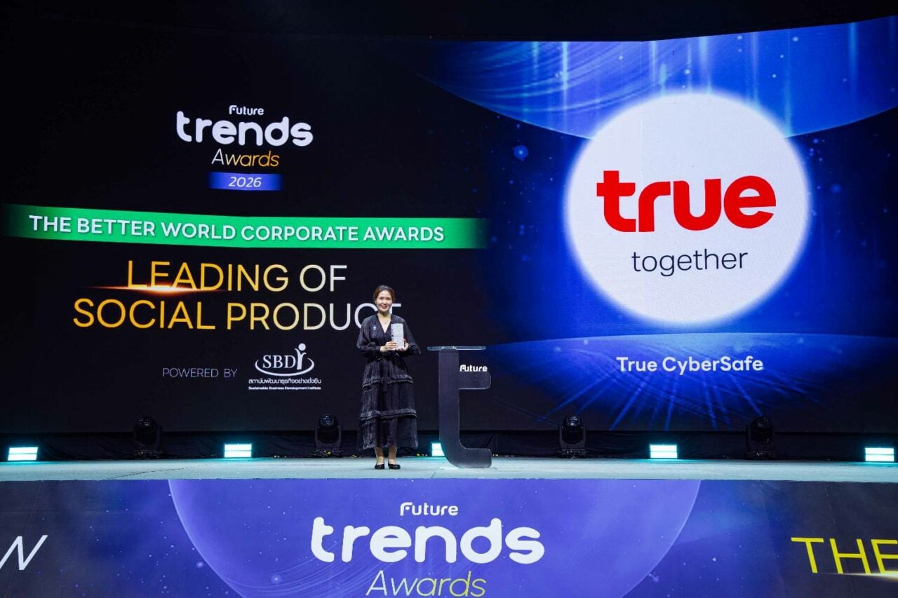 ท่ามกลางภัยไซเบอร์ที่เพิ่มขึ้นต่อเนื่องในยุคดิจิทัล ทรู คอร์ปอเรชั่น เดินหน้ายกระดับความปลอดภัยบนโครงข่ายโทรคมนาคม ด้วย TrueCyber Safe โซลูชันปกป้องภัยไซเบอร์อัจฉริยะระดับเครือข่าย ที่ล่าสุดคว้ารางวัลระดับนานาชาติจากเวที Future Trends Awards 2026 ในกลุ่ม The Better World Corporate Awards สาขา Leading of Social Product (องค์กรยอดเยี่ยมด้าน Social Product) สะท้อนบทบาทผู้นำด้านเทคโนโลยีที่มุ่งสร้างสังคมดิจิทัลที่ปลอดภัยสำหรับคนไทยทุกคน โดยมี คุณธัญรส จรุงจิตต์ หัวหน้าฝ่ายดิจิทัลเอนแฮนส์เมนต์ – ไซเบอร์ซีเคียวริตี้ บมจ. ทรู คอร์ปอเรชั่น ได้เป็นตัวแทนขึ้นรับรางวัลอันทรงเกียรติ ณ ภิรัช ฮอลล์ ศูนย์นิทรรศการและการประชุมไบเทค บางนา