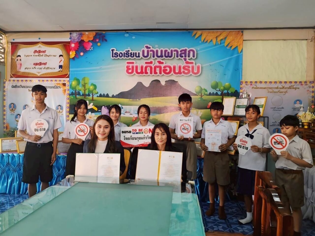เมื่อวันที่ 26 ก.พ.นางภัทราวดี ศรีโนนยาง ผู้อำนวยการโรงเรียนกุงแก้ววิทยาคาร อำเภอศรีบุญเรือง จังหวัดหนองบัวลำภู สังกัดสำนักงานเขตพื้นที่การศึกษามัธยมศึกษาเลย หนองบัวลำภู ลงนามบันทึกข้อตกลงความร่วมมือ (MOU) การป้องกันและแก้ไขยาเสพติด กับ นางสุกัญญา เขียวเสน ผู้อำนวยการโรงเรียนบ้านผาสุก สำนักงานเขตพื้นที่การศึกษาประถมศึกษาหนองบัวลำภู เขต 1 ซึ่งเป็นโรงเรียนเครือข่ายในเขตพื้นที่บริการ